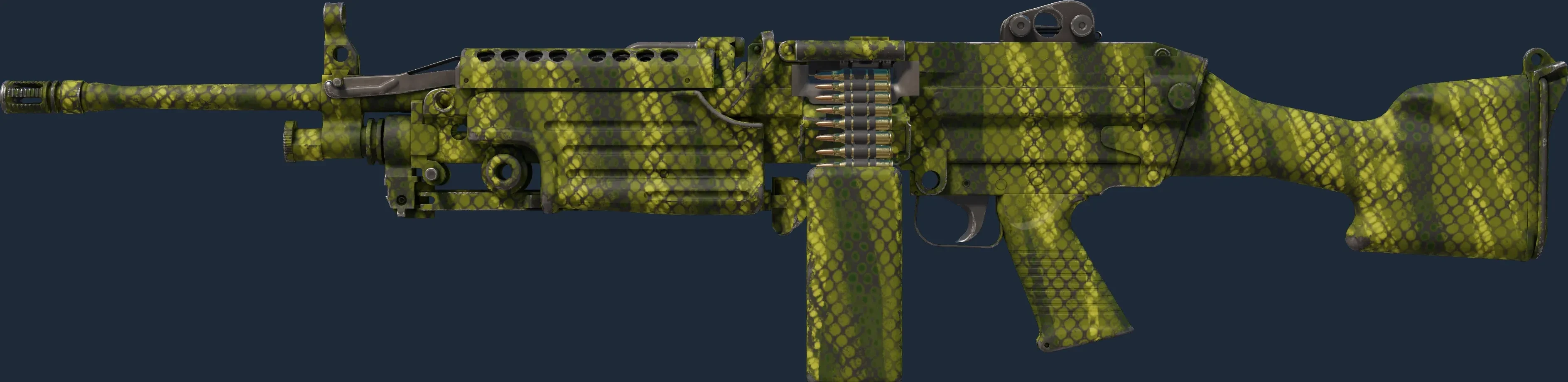 The M249 | Gator Mesh is a Covert grade skin for the M249 in Counter-Strike 2. It features a Custom Paint Job finish and was designed by Valve.