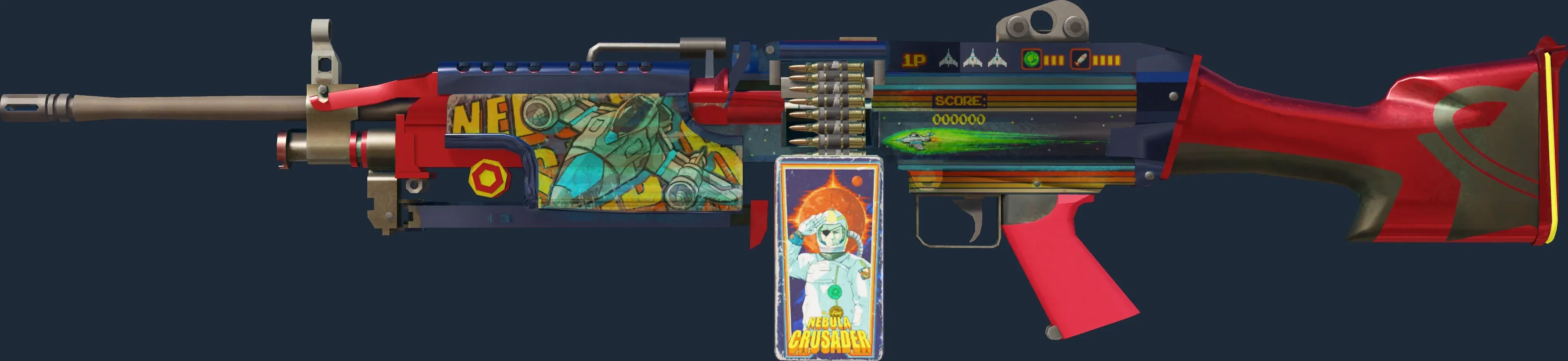 The M249 | Nebula Crusader is a Covert grade skin for the M249 in Counter-Strike 2. It features a Custom Paint Job finish and was designed by Zaphk.
