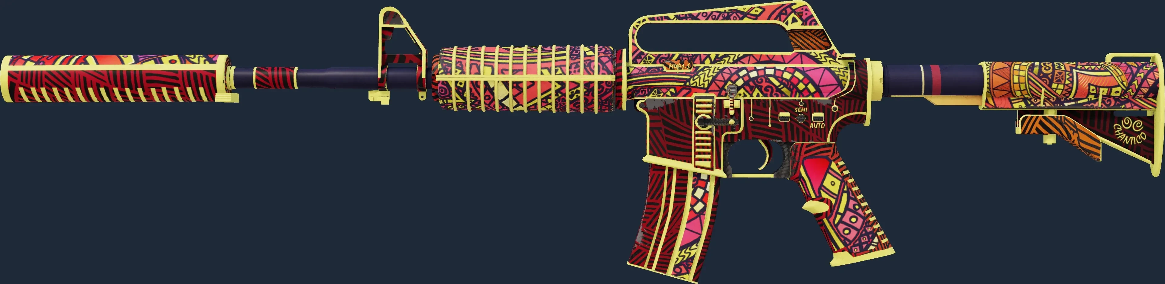The M4A1-S | Chanticos Fire is a Covert grade skin for the M4A1-S in Counter-Strike 2. It features a Custom Paint Job finish and was designed by Valve.