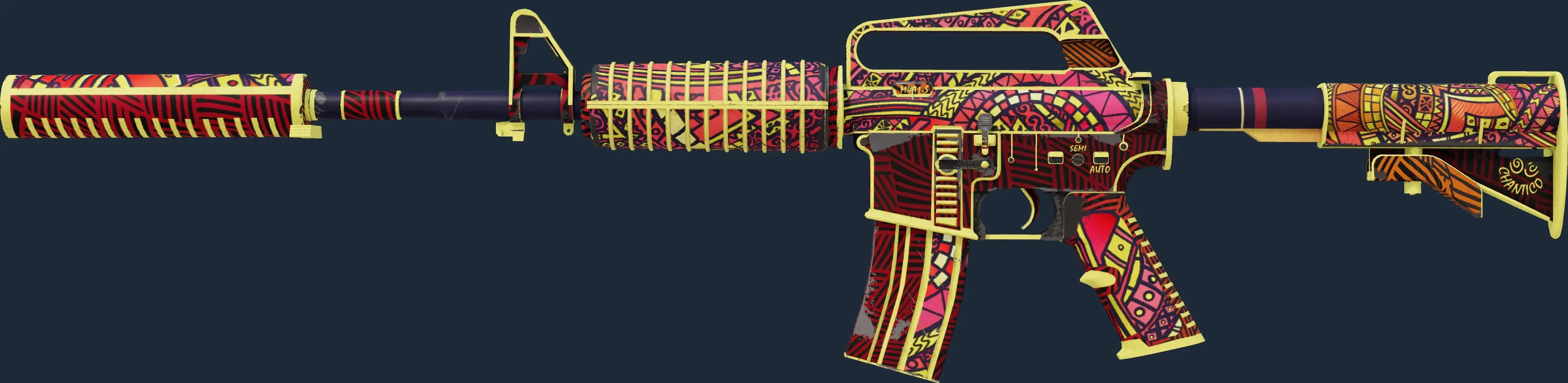 The M4A1-S | Chanticos Fire is a Covert grade skin for the M4A1-S in Counter-Strike 2. It features a Custom Paint Job finish and was designed by Valve.