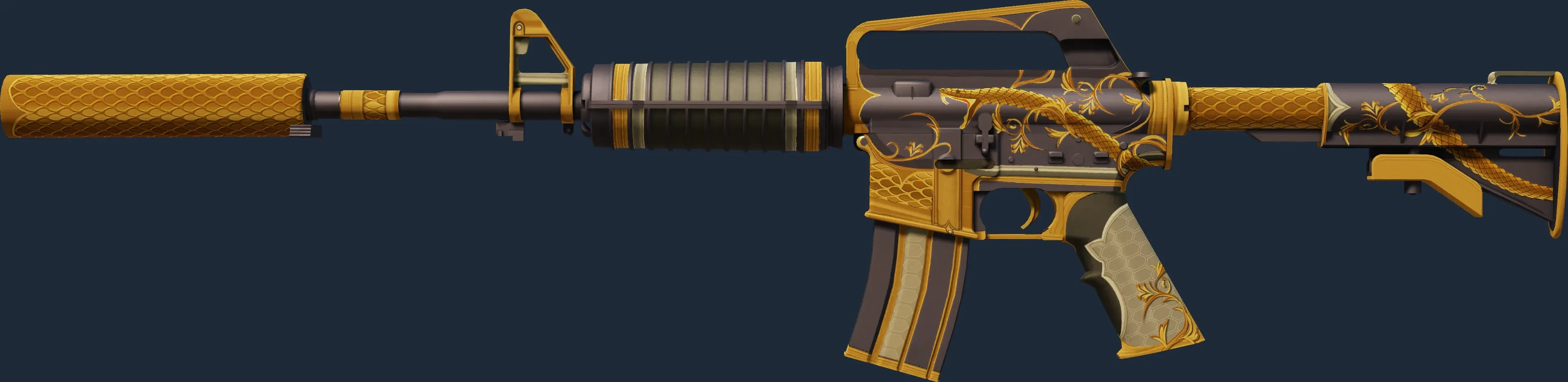 The M4A1-S | Golden Coil is a Covert grade skin for the M4A1-S in Counter-Strike 2. It features a Custom Paint Job finish and was designed by Kitch.sb.