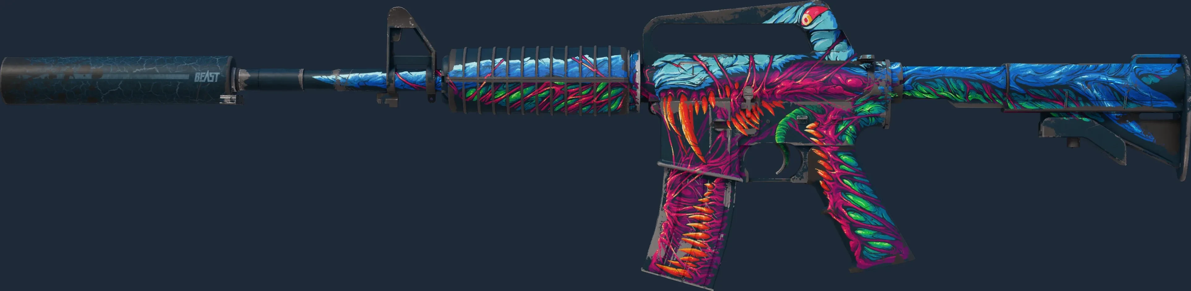The M4A1-S | Hyper Beast is a Covert grade skin for the M4A1-S in Counter-Strike 2. It features a Custom Paint Job finish and was designed by frontaLOBE.