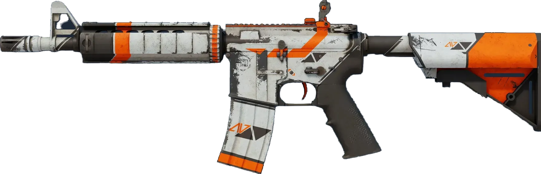 The float value of the M4A4 | Asiimov ranges from 0.00 to 1.00, which makes the skin available in all exteriors. For each exterior, there also exists a StatTrak version for the Asiimov.