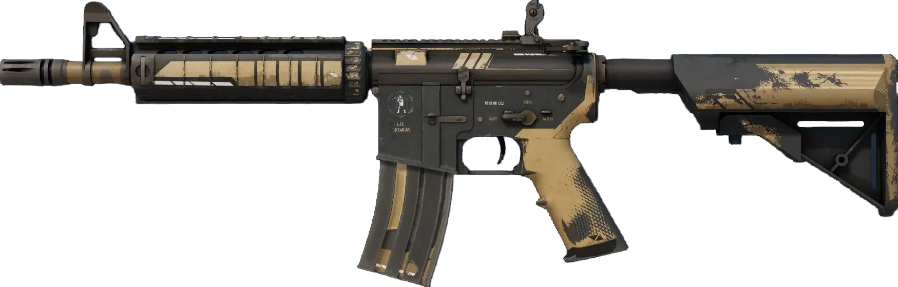 The float value of the M4A4 | Desert Strike ranges from 0.00 to 1.00, which makes the skin available in all exteriors. For each exterior, there also exists a StatTrak version for the Desert Strike.