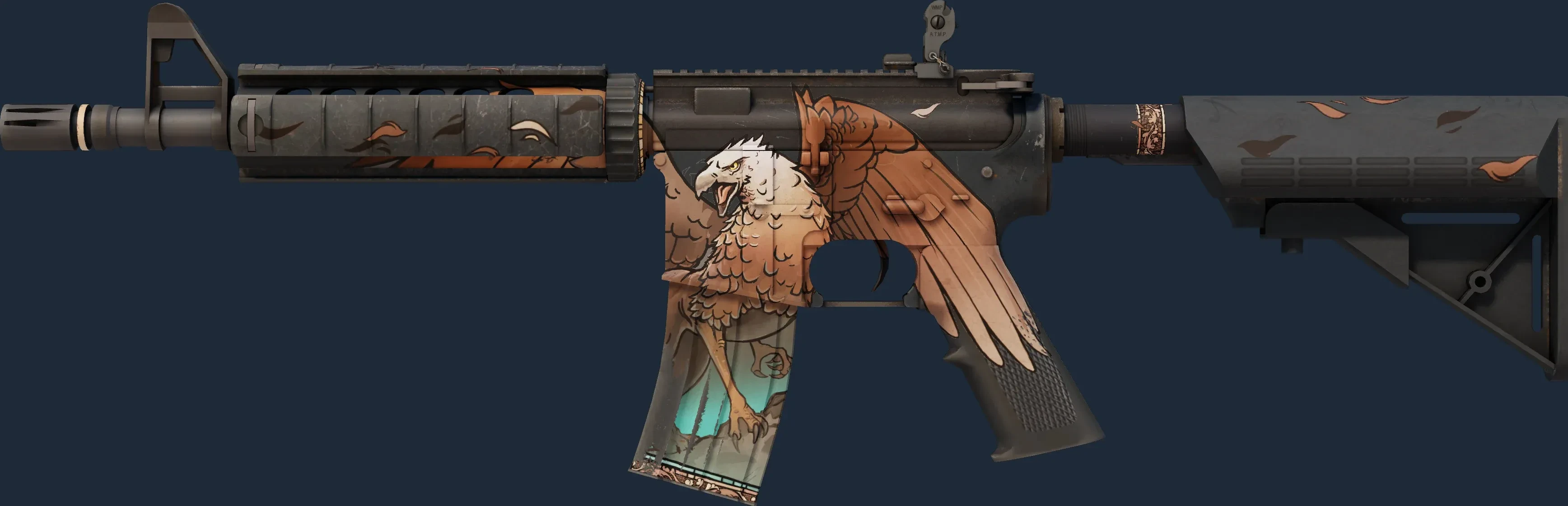The M4A4 | Griffin is a Covert grade skin for the M4A4 in Counter-Strike 2. It features a Custom Paint Job finish and was designed by Valve.