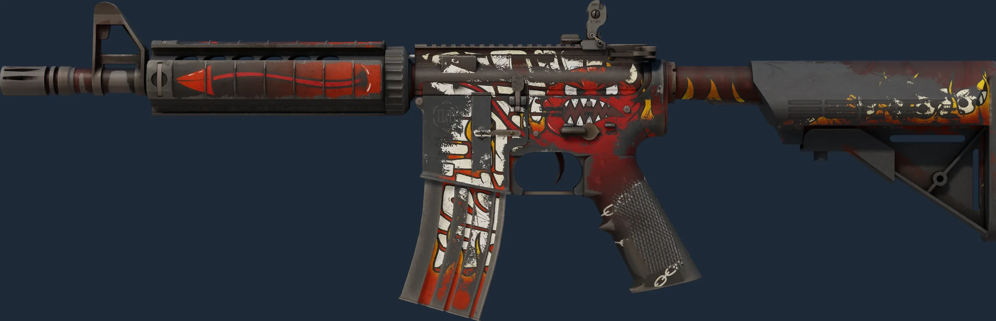 The M4A4 | Hellfire is a Covert grade skin for the M4A4 in Counter-Strike 2. It features a Custom Paint Job finish and was designed by SHPR.