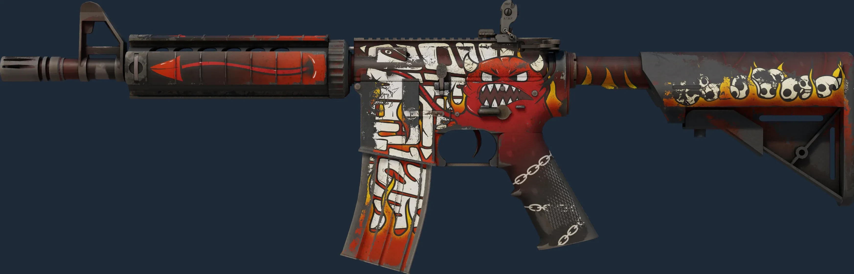 The M4A4 | Hellfire is a Covert grade skin for the M4A4 in Counter-Strike 2. It features a Custom Paint Job finish and was designed by SHPR.