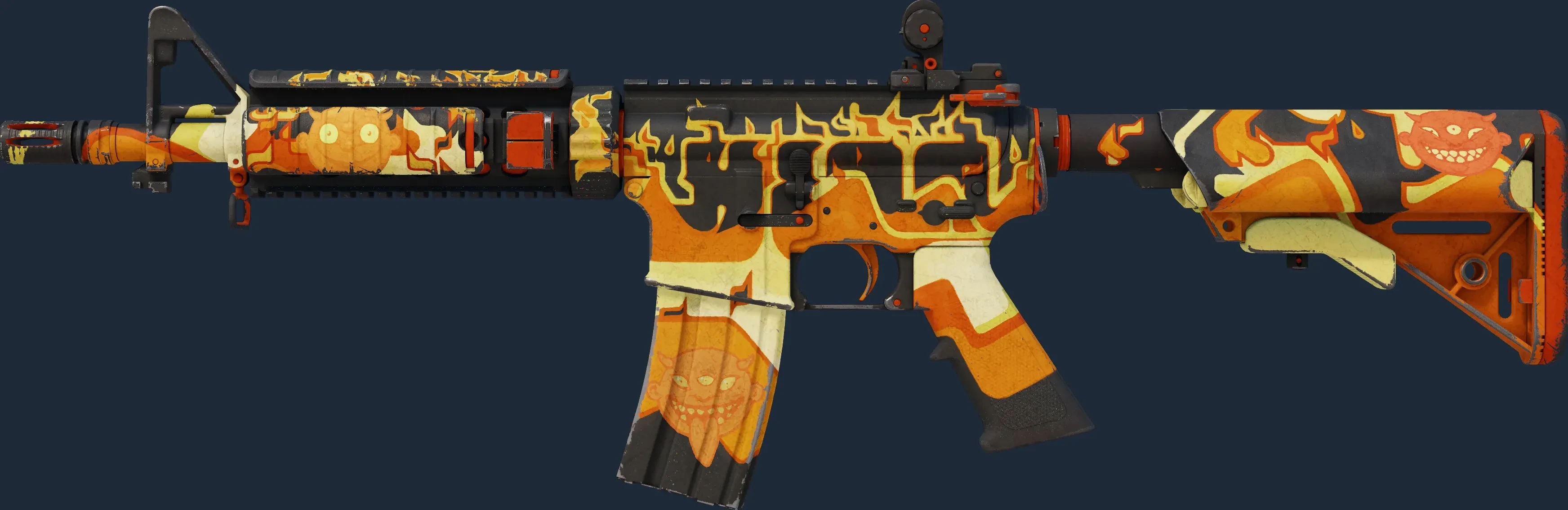 The M4A4 | Hellish is a Covert grade skin for the M4A4 in Counter-Strike 2. It features a Custom Paint Job finish and was designed by Valve.
