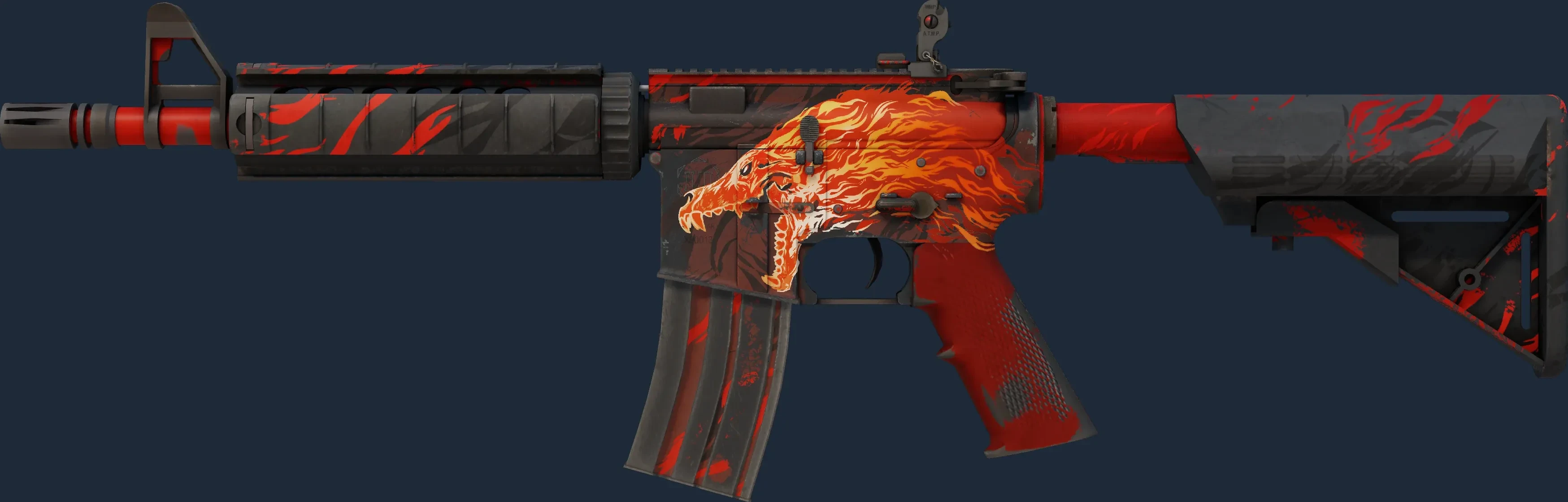 The M4A4 | Howl is a Covert grade skin for the M4A4 in Counter-Strike 2. It features a Custom Paint Job finish and was designed by Valve.