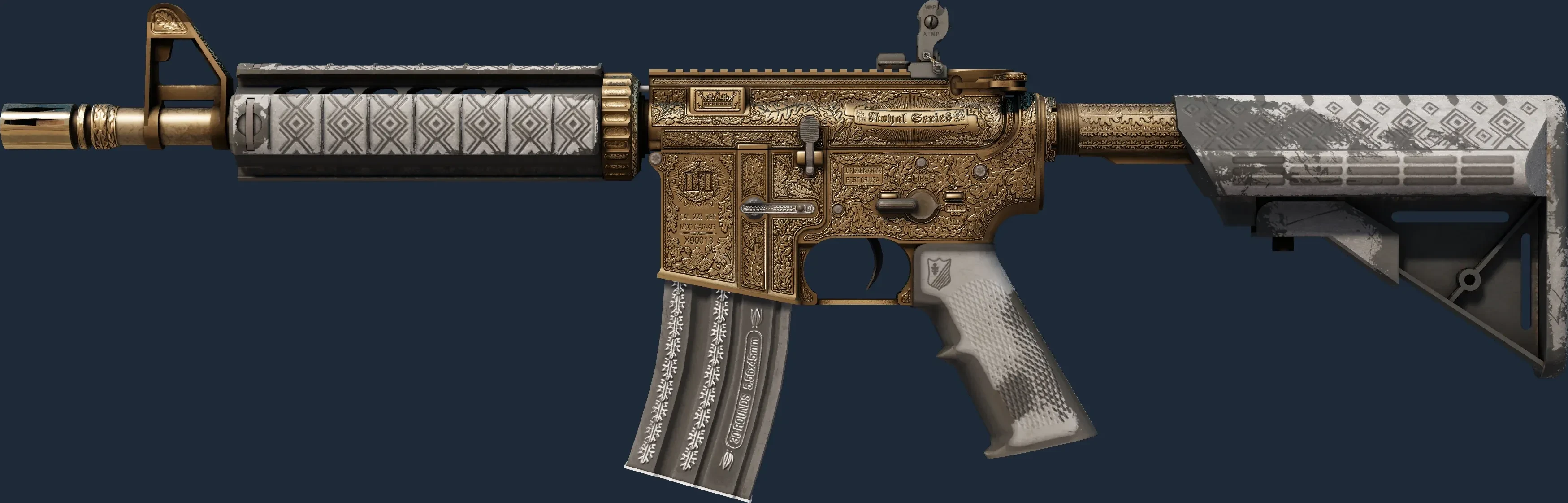 The M4A4 | Royal Paladin is a Covert grade skin for the M4A4 in Counter-Strike 2. It features a Custom Paint Job finish and was designed by Teo.