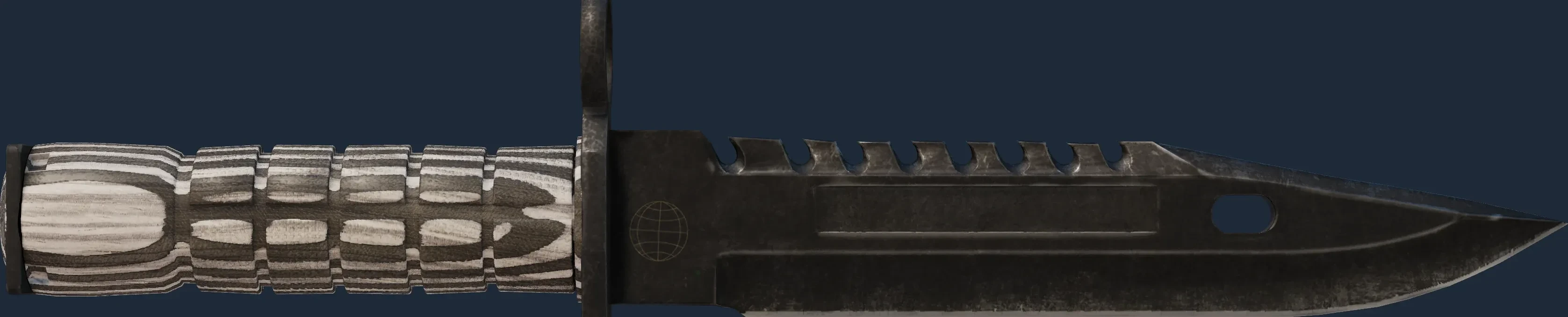 The M9 Bayonet | Black Laminate is a Covert grade skin for the M9 Bayonet in Counter-Strike 2. It features a Custom Paint Job finish and was designed by Valve.