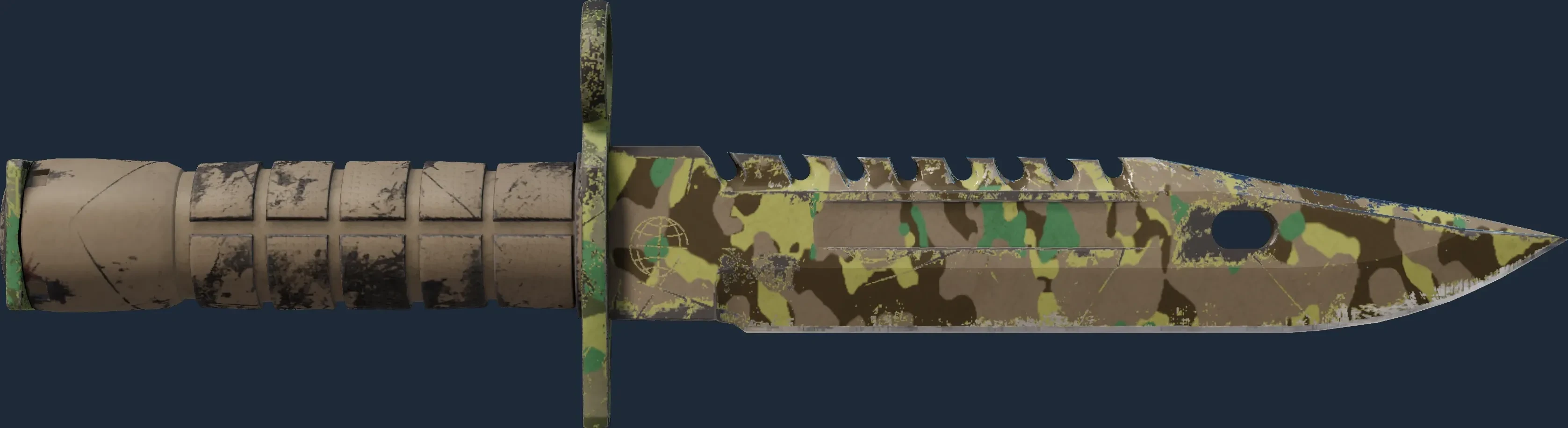 The M9 Bayonet | Boreal Forest is a Covert grade skin for the M9 Bayonet in Counter-Strike 2. It features a Custom Paint Job finish and was designed by Valve.