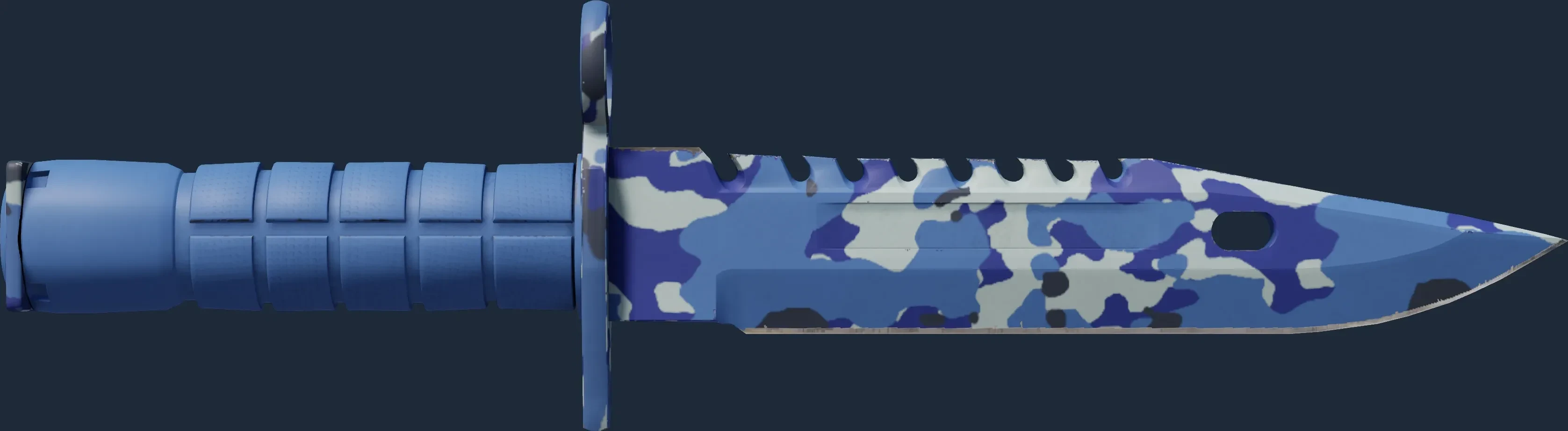 The M9 Bayonet | Bright Water is a Covert grade skin for the M9 Bayonet in Counter-Strike 2. It features a Custom Paint Job finish and was designed by Valve.