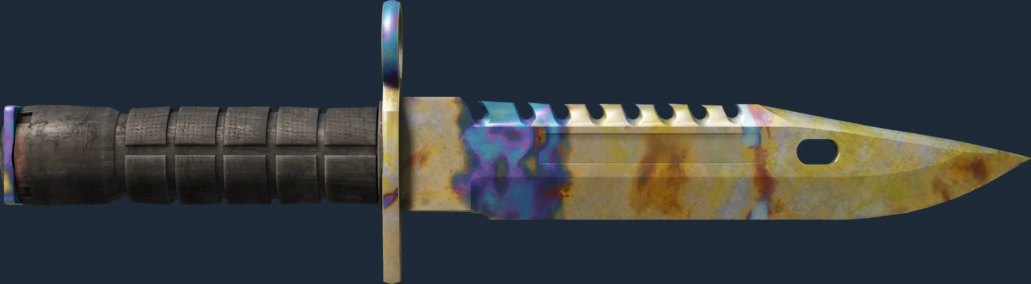 The M9 Bayonet | Case Hardened is a Covert grade skin for the M9 Bayonet in Counter-Strike 2. It features a Custom Paint Job finish and was designed by Valve.