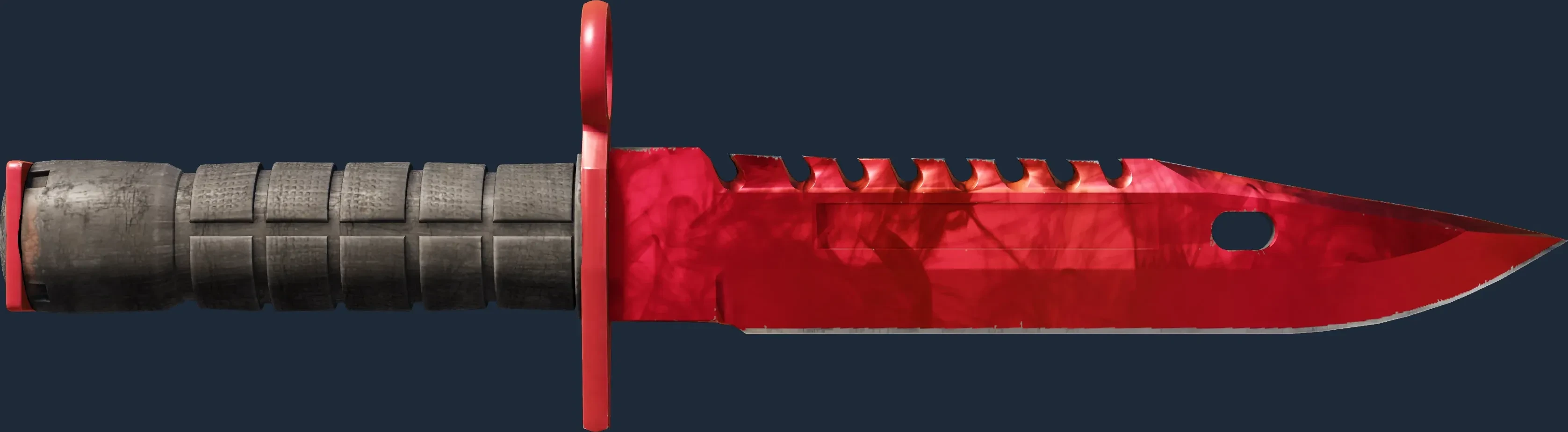 The M9 Bayonet | Doppler Ruby is a Covert grade skin for the M9 Bayonet in Counter-Strike 2. It features a Custom Paint Job finish and was designed by Valve.