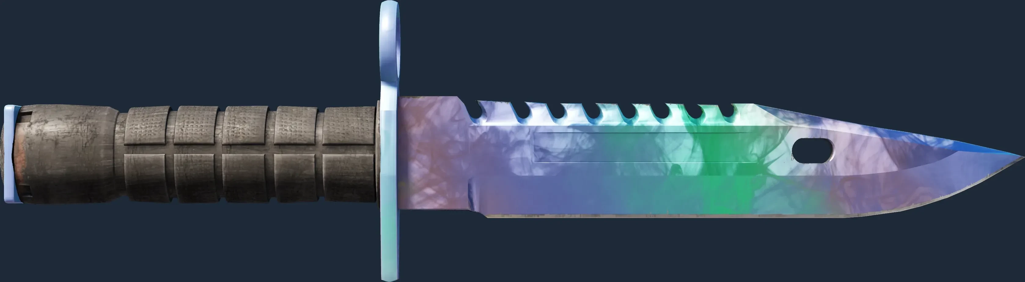 The M9 Bayonet | Gamma Doppler Phase 1 is a Covert grade skin for the M9 Bayonet in Counter-Strike 2. It features a Custom Paint Job finish and was designed by Valve.