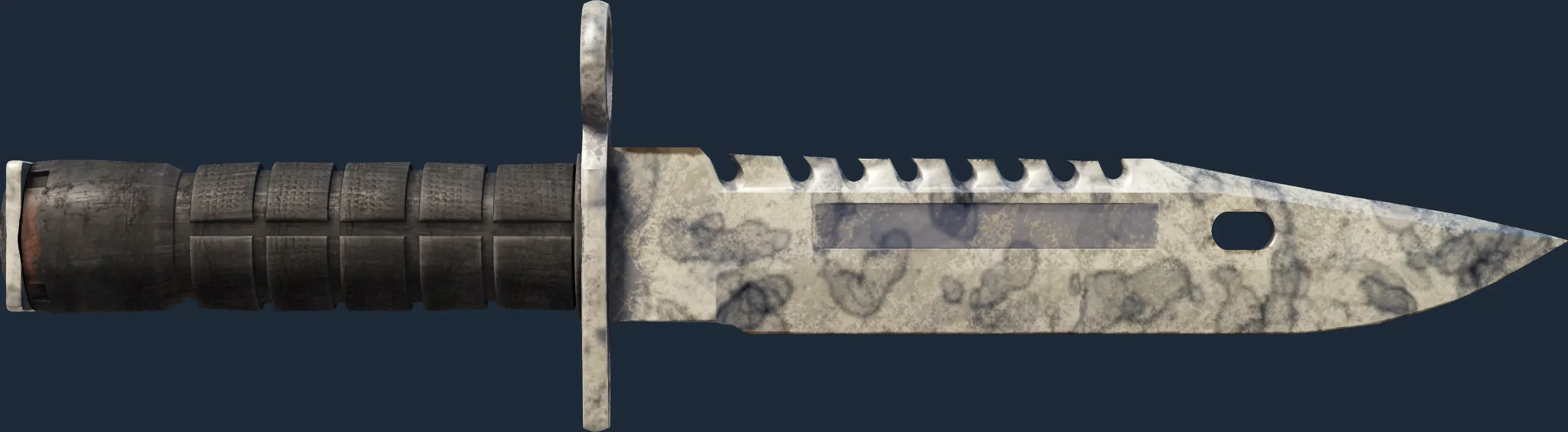 The M9 Bayonet | Stained is a Covert grade skin for the M9 Bayonet in Counter-Strike 2. It features a Custom Paint Job finish and was designed by Valve.