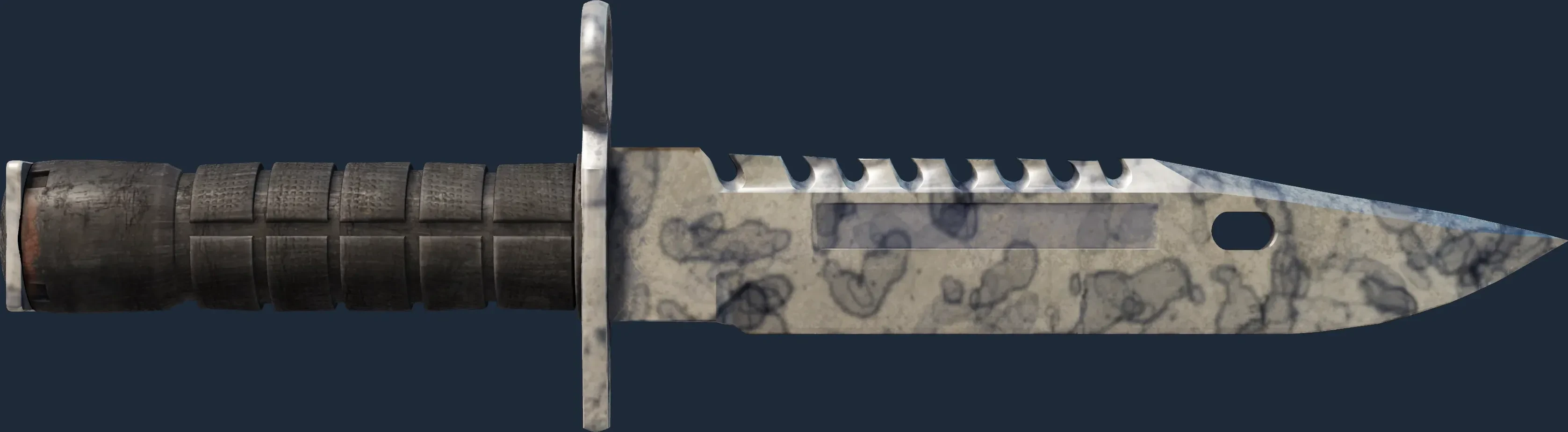 The M9 Bayonet | Stained is a Covert grade skin for the M9 Bayonet in Counter-Strike 2. It features a Custom Paint Job finish and was designed by Valve.