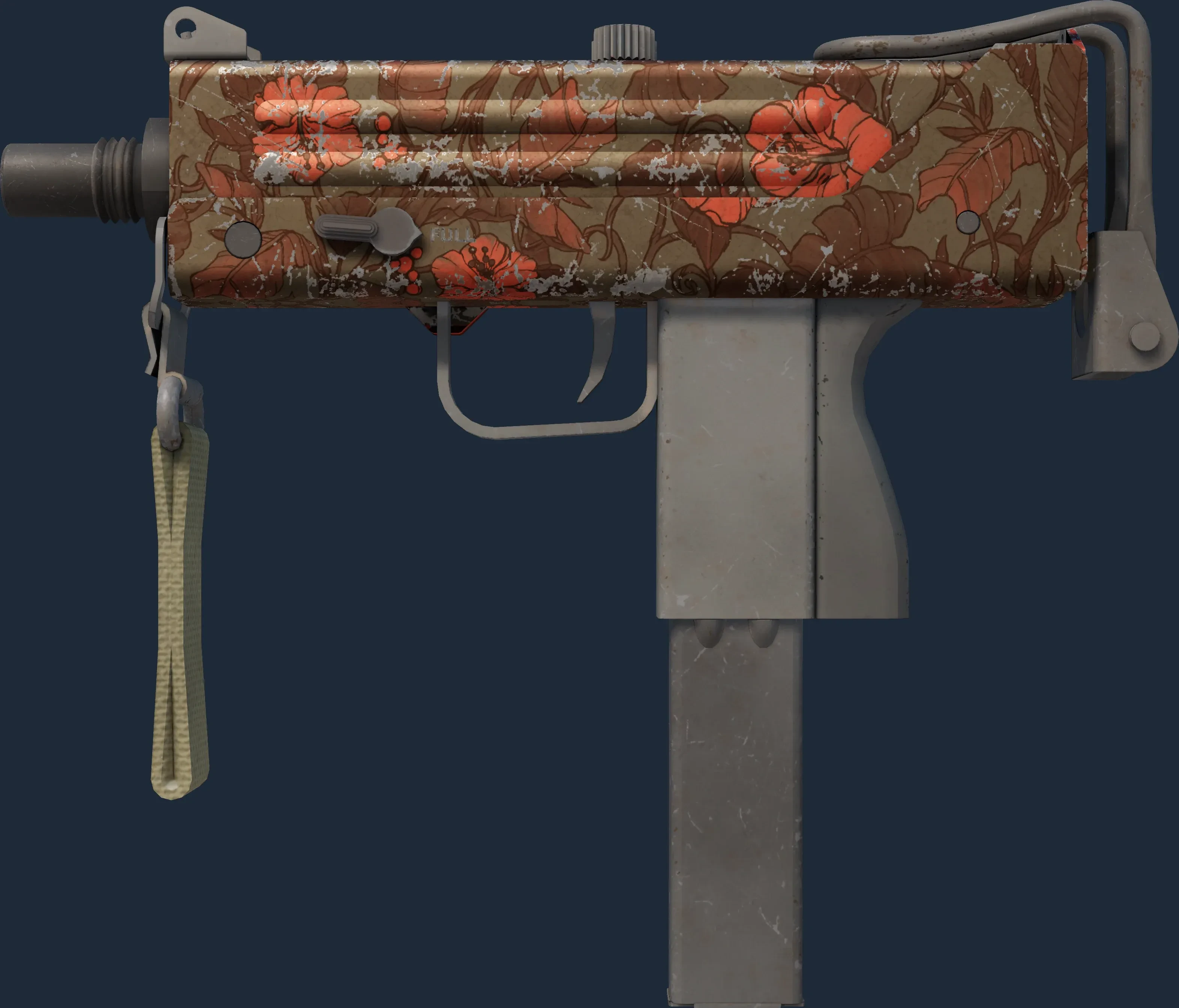 The MAC-10 | Aloha is a Covert grade skin for the MAC-10 in Counter-Strike 2. It features a Custom Paint Job finish and was designed by Chemical Alia.