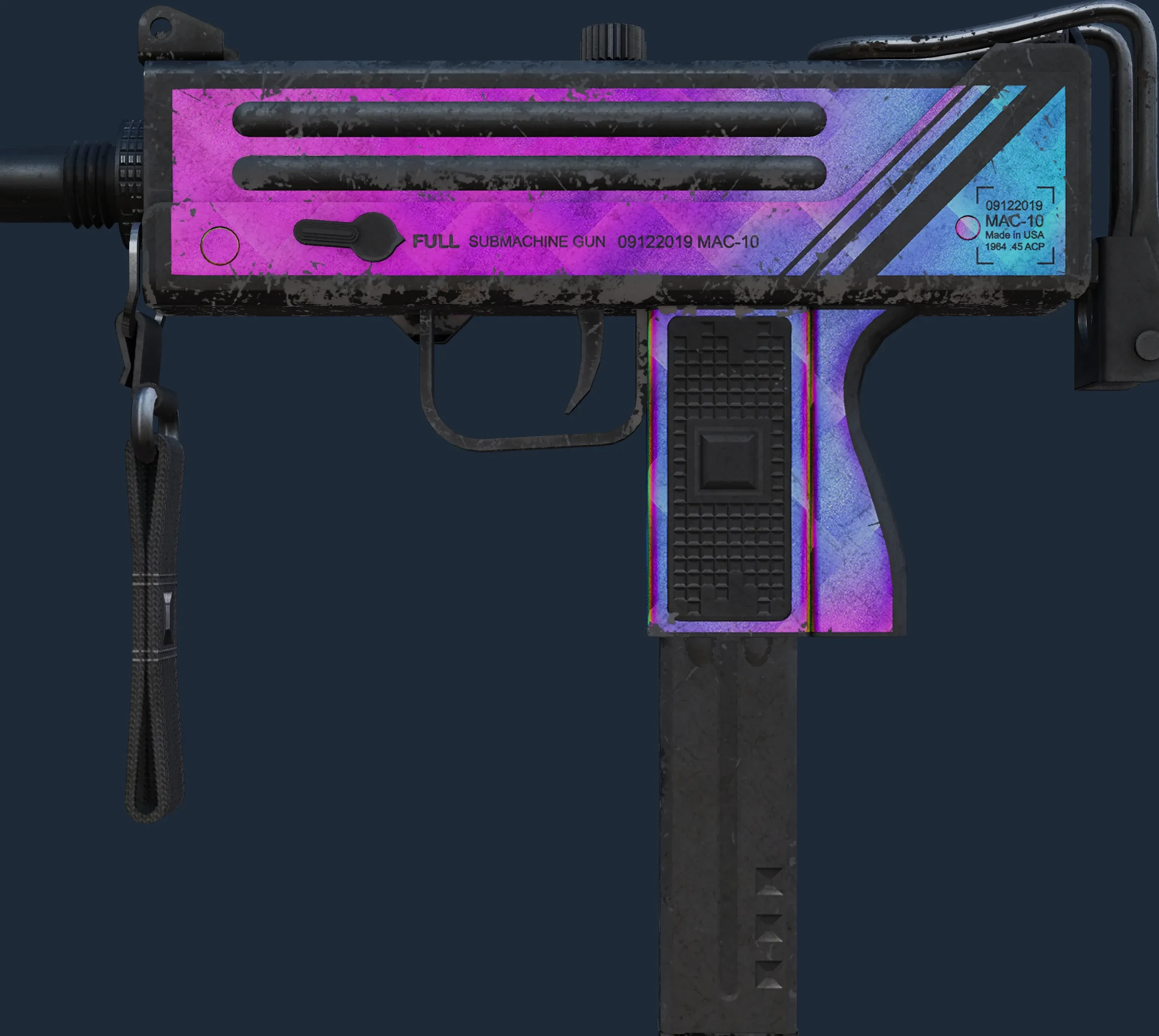 The MAC-10 | Disco Tech is a Covert grade skin for the MAC-10 in Counter-Strike 2. It features a Custom Paint Job finish and was designed by hexeth.