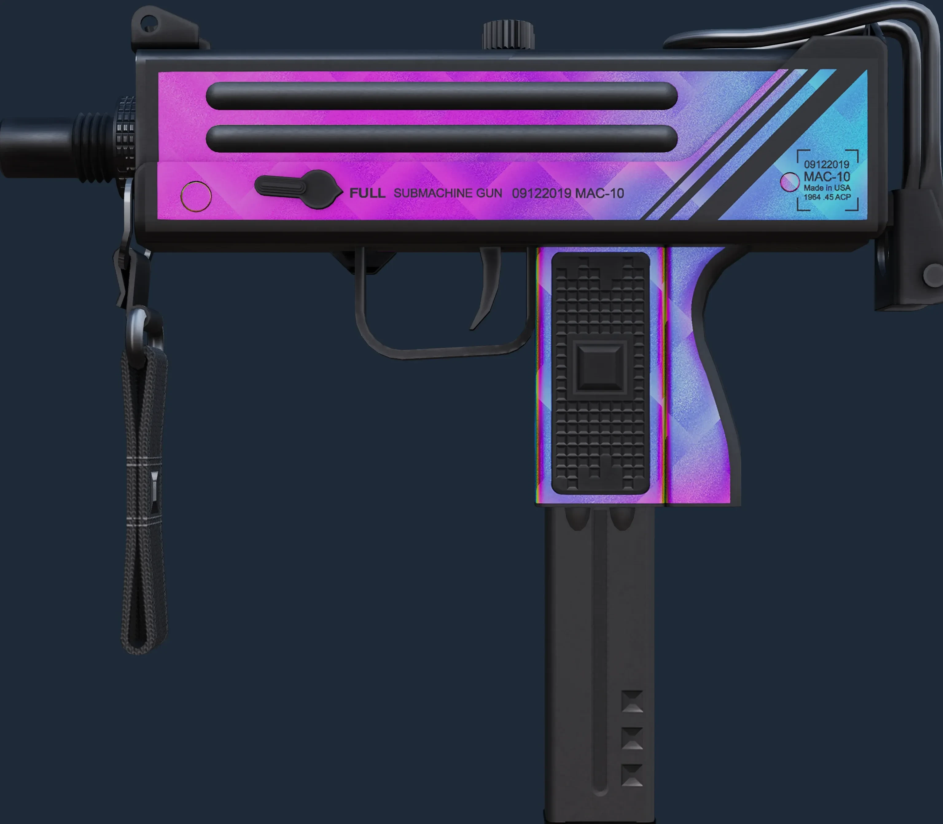 The MAC-10 | Disco Tech is a Covert grade skin for the MAC-10 in Counter-Strike 2. It features a Custom Paint Job finish and was designed by hexeth.