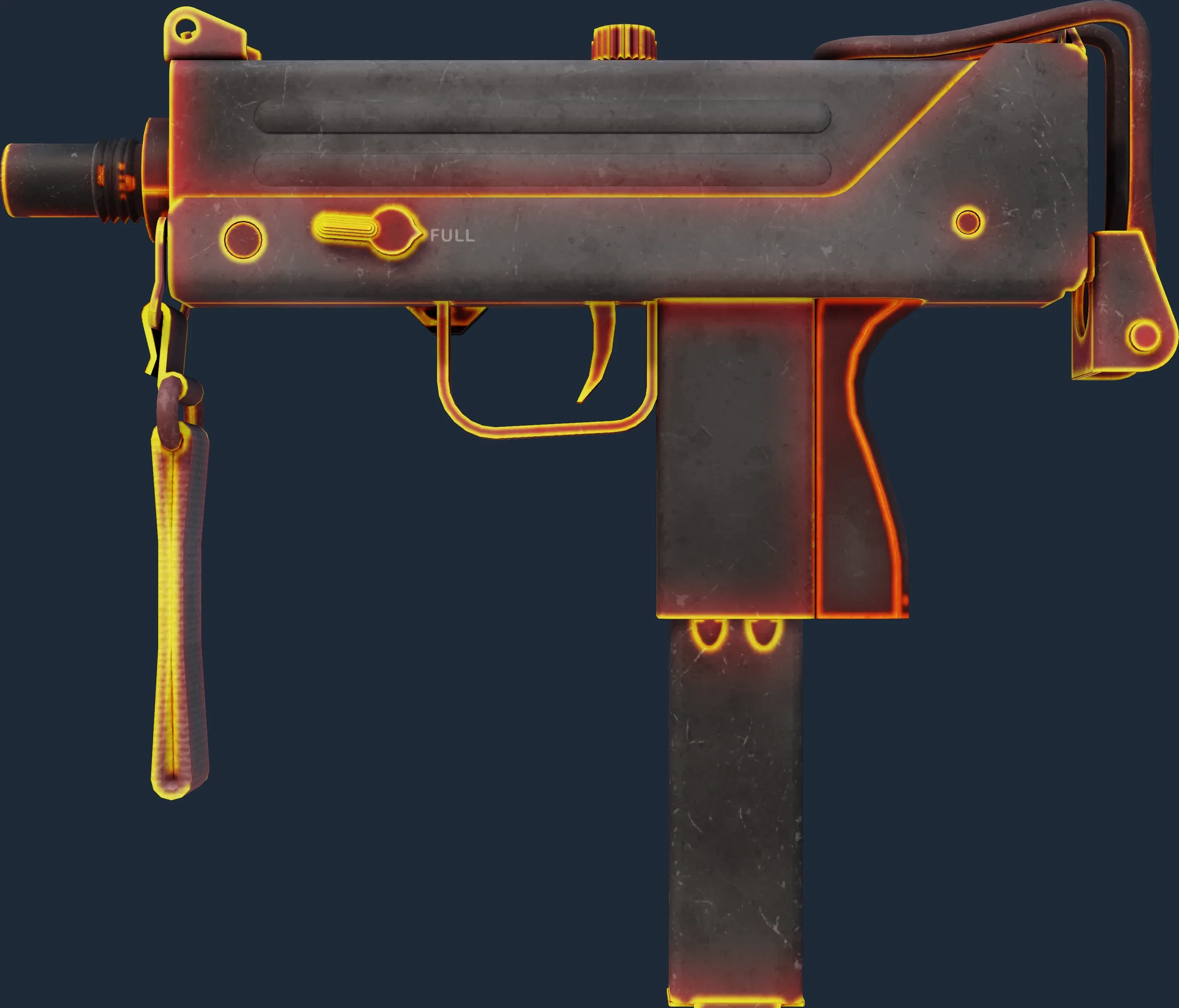 The MAC-10 | Heat is a Covert grade skin for the MAC-10 in Counter-Strike 2. It features a Custom Paint Job finish and was designed by joop.