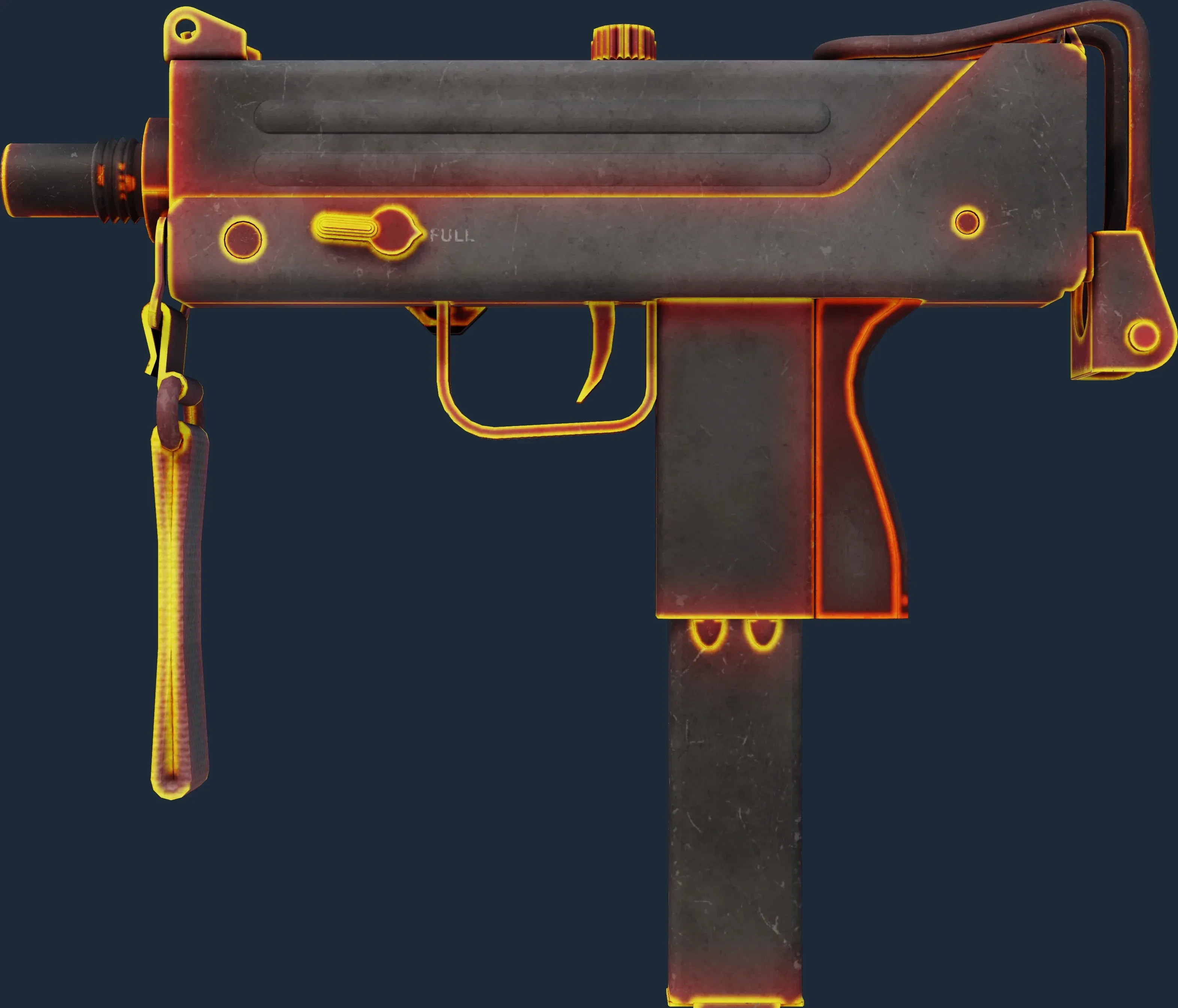 The MAC-10 | Heat is a Covert grade skin for the MAC-10 in Counter-Strike 2. It features a Custom Paint Job finish and was designed by joop.