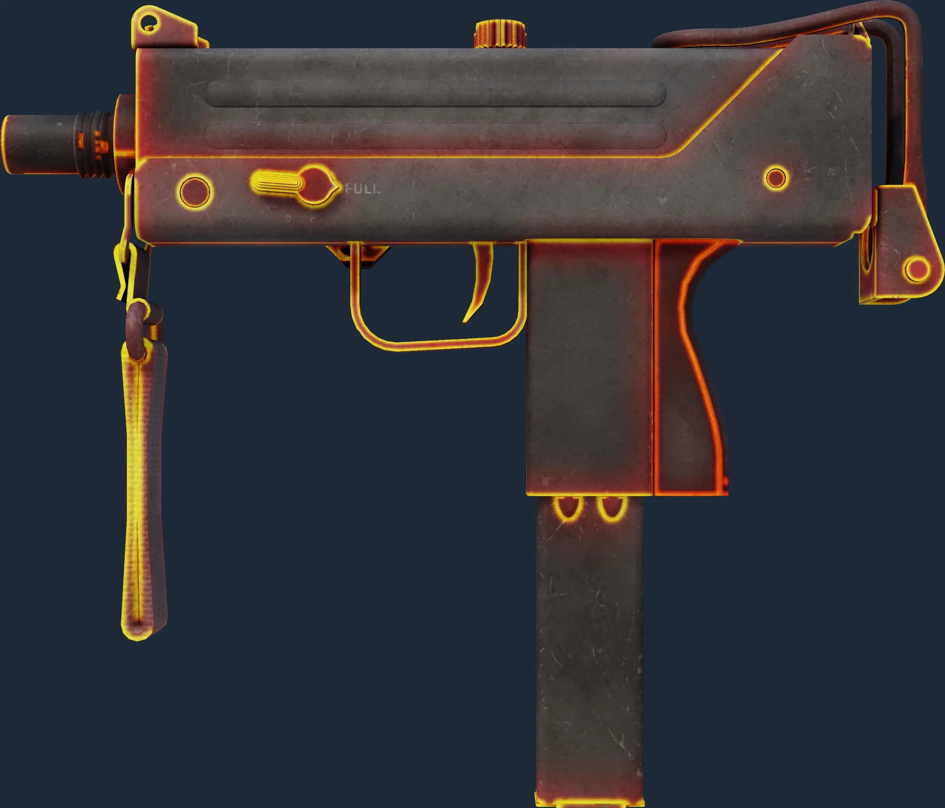 The MAC-10 | Heat is a Covert grade skin for the MAC-10 in Counter-Strike 2. It features a Custom Paint Job finish and was designed by joop.