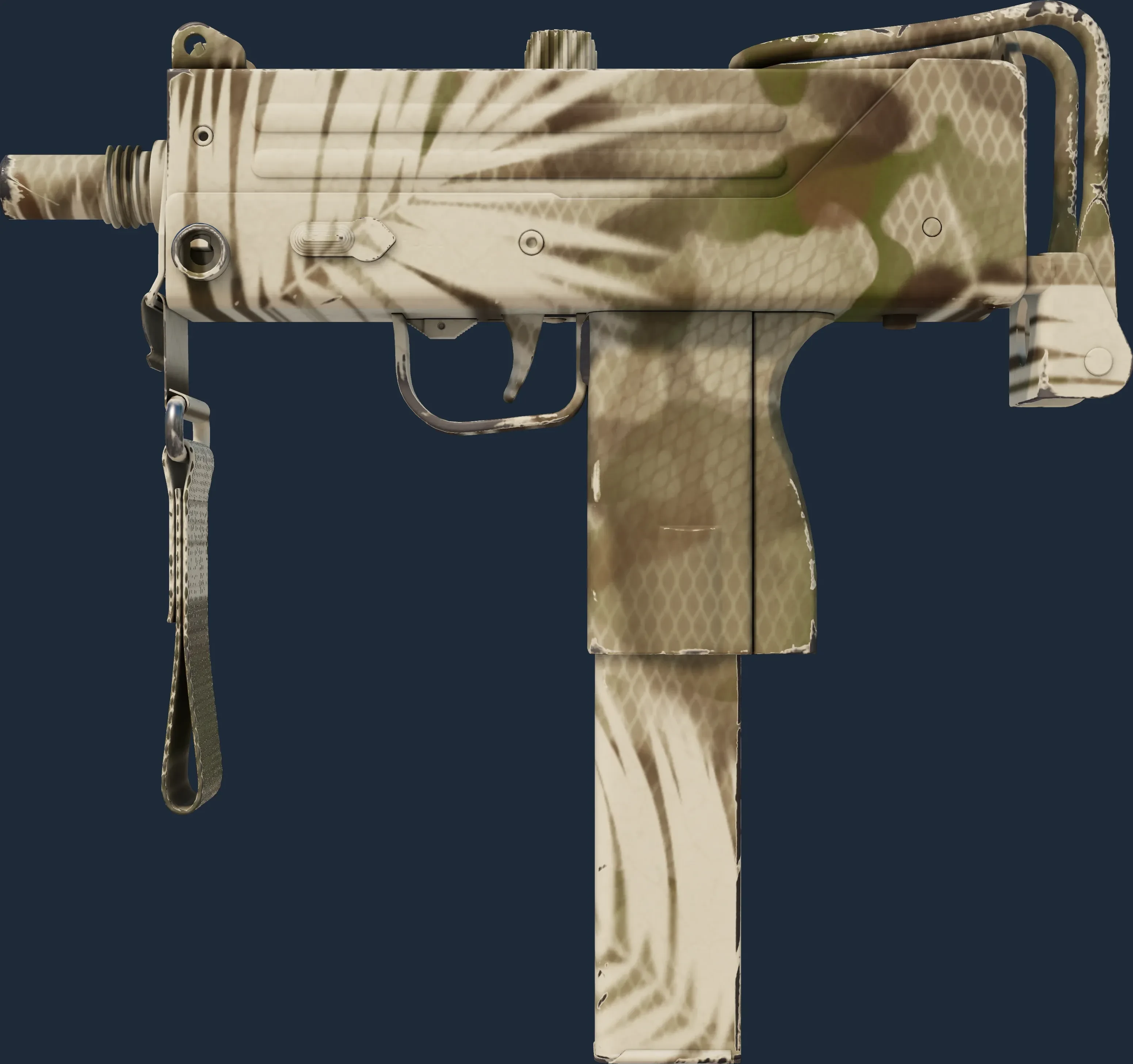 The MAC-10 | Palm is a Covert grade skin for the MAC-10 in Counter-Strike 2. It features a Custom Paint Job finish and was designed by Valve.