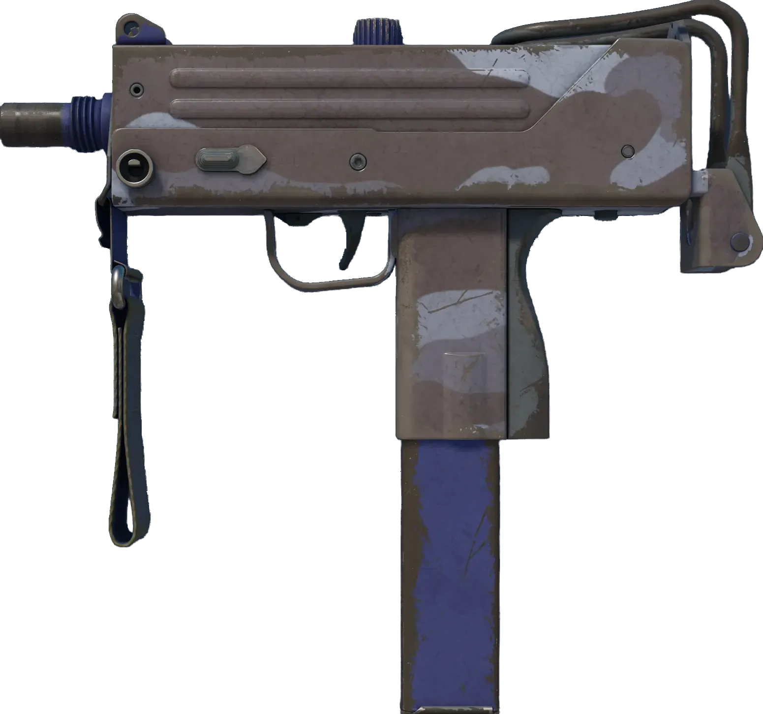 Essentially a box that bullets come out of, the MAC-10 SMG boasts a high rate of fire, with poor spread accuracy and high recoil as trade-offs. It has been painted using a solid blue camo pattern. _We all have to do things we don't like_