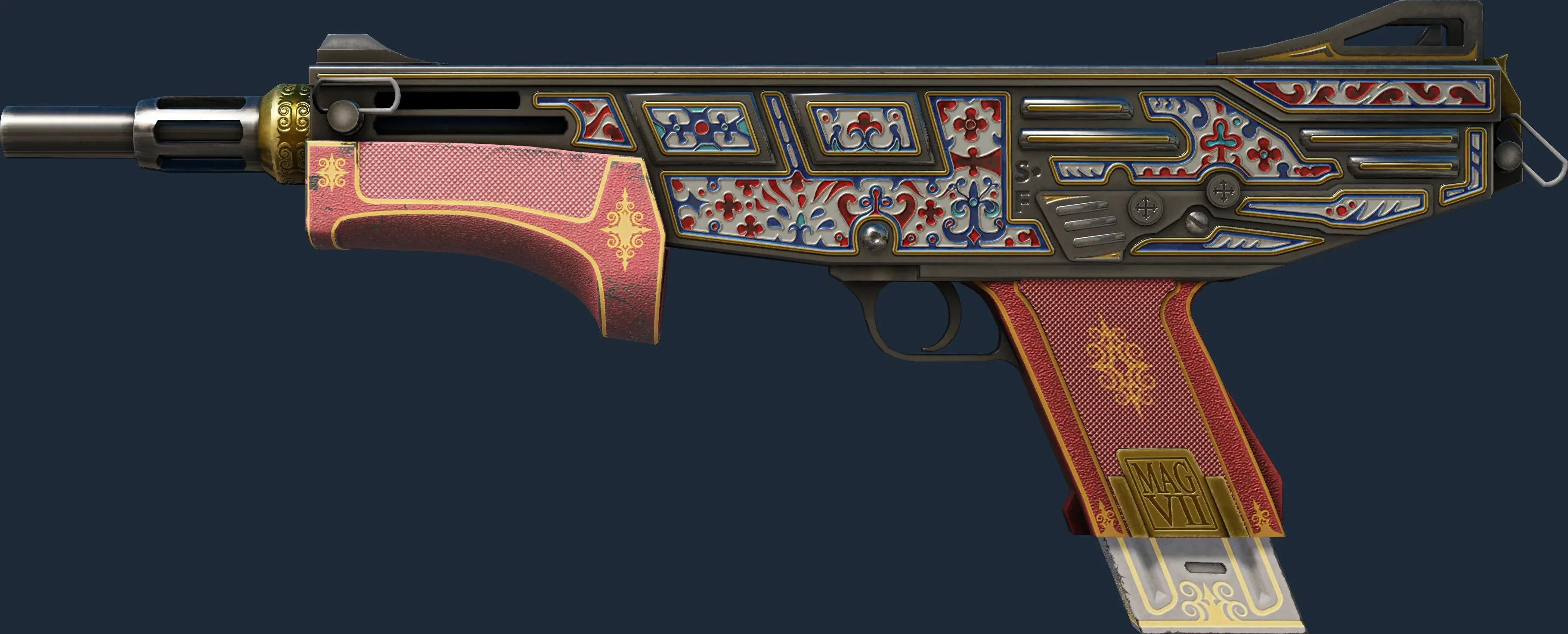 The MAG-7 | Cinquedea is a Covert grade skin for the MAG-7 in Counter-Strike 2. It features a Custom Paint Job finish and was designed by Valve.
