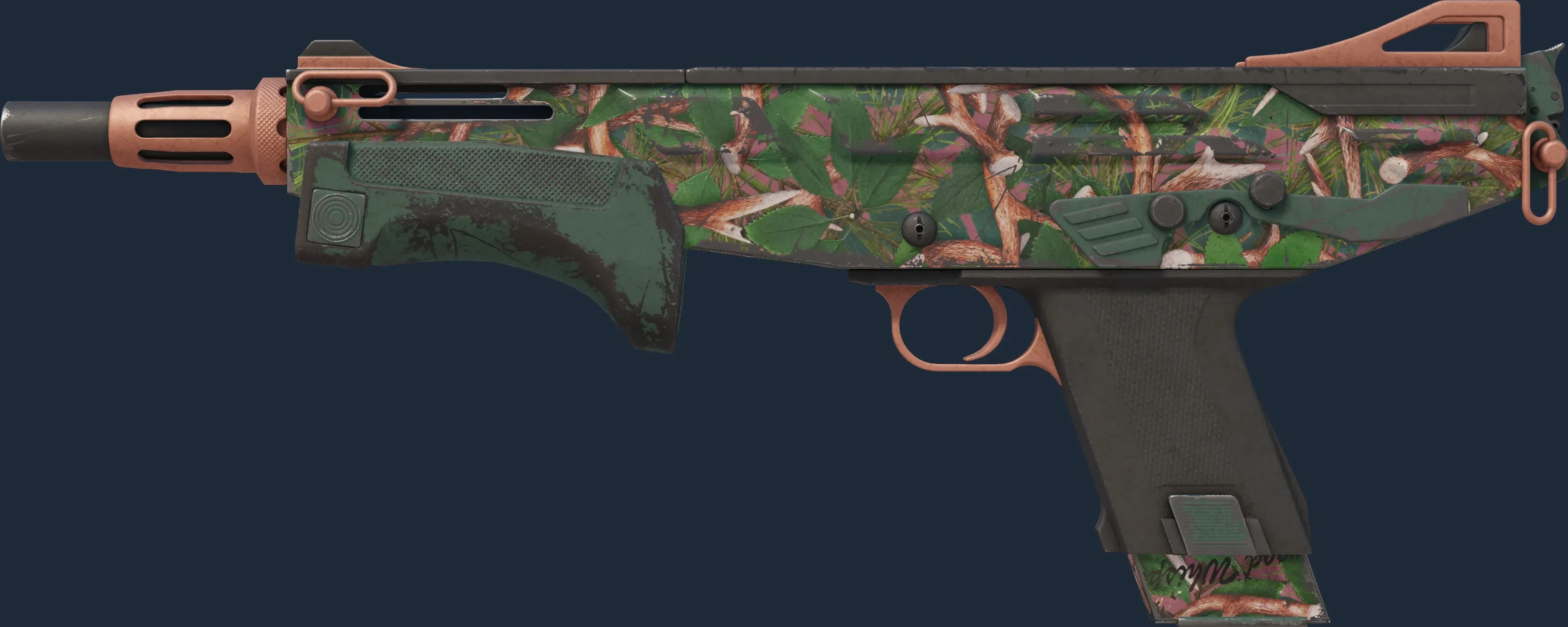 The Wildwood has a float value range from 0.00 to 1.00, making it available in 5 wear conditions: Factory New, Minimal Wear, Field-Tested, Well-Worn, Battle-Scarred.