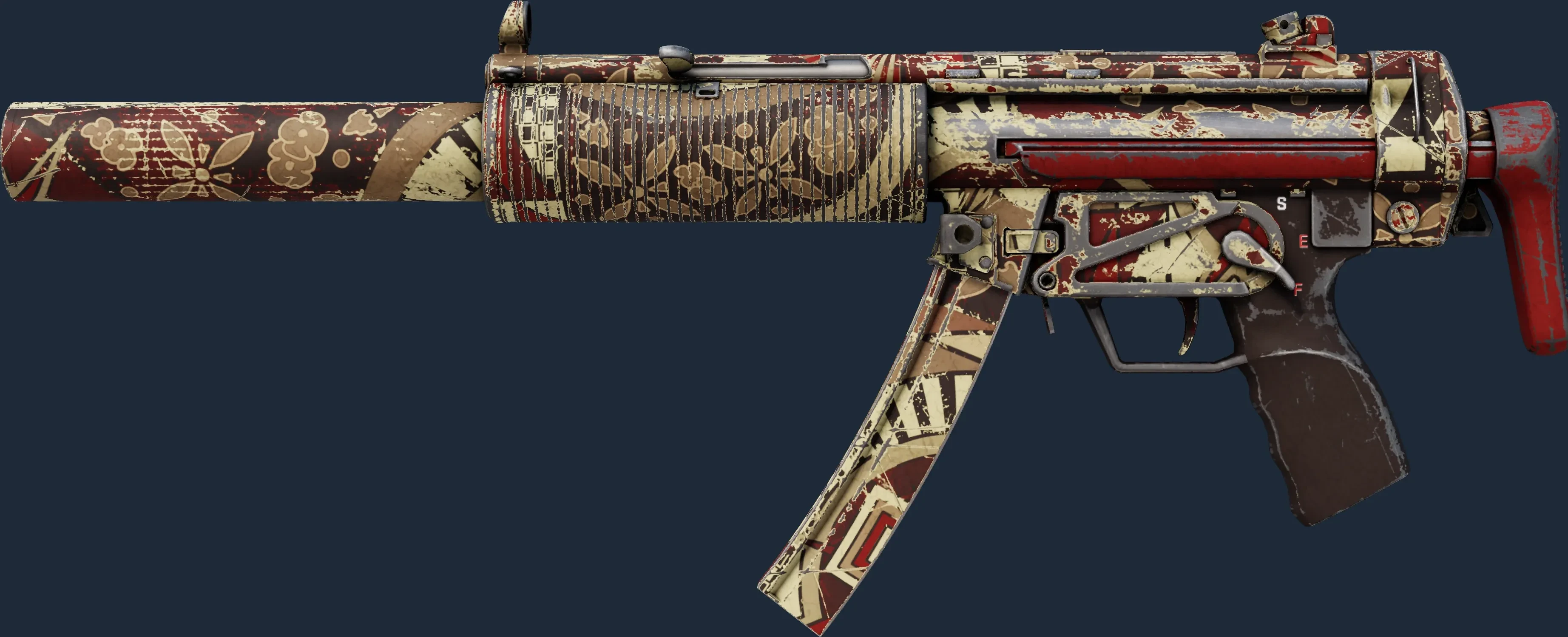 The MP5-SD | Autumn Twilly is a Covert grade skin for the MP5-SD in Counter-Strike 2. It features a Custom Paint Job finish and was designed by Valve.