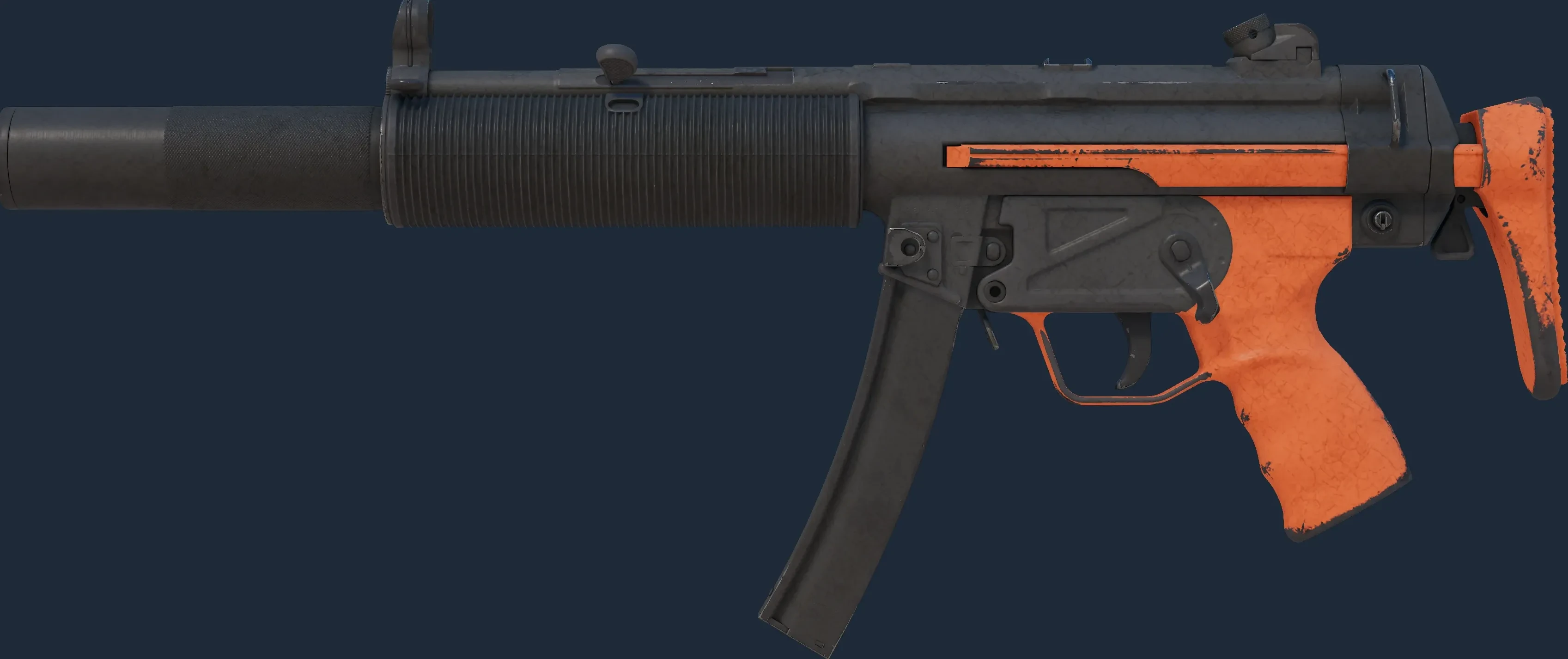 The MP5-SD | Nitro is a Covert grade skin for the MP5-SD in Counter-Strike 2. It features a Custom Paint Job finish and was designed by Valve.