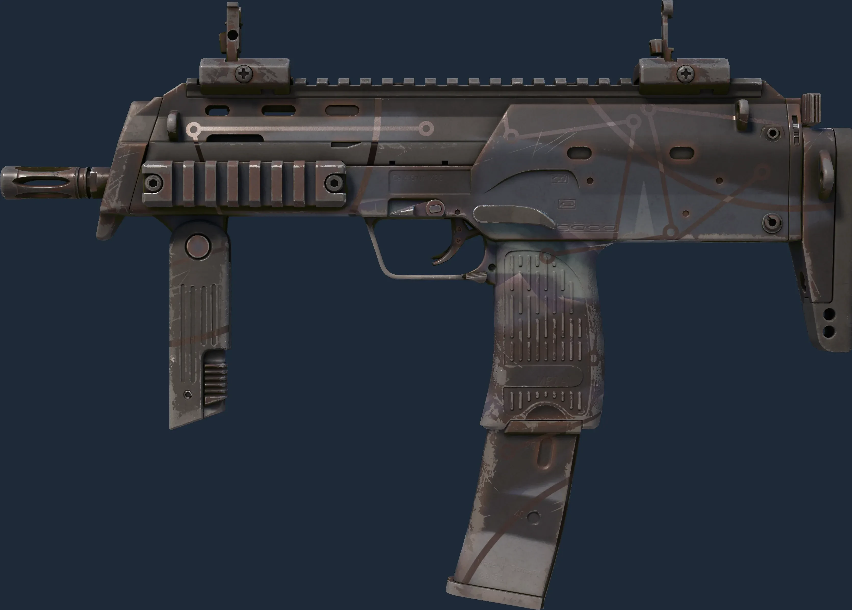 The MP7 | Astrolabe is a Covert grade skin for the MP7 in Counter-Strike 2. It features a Custom Paint Job finish and was designed by Valve.