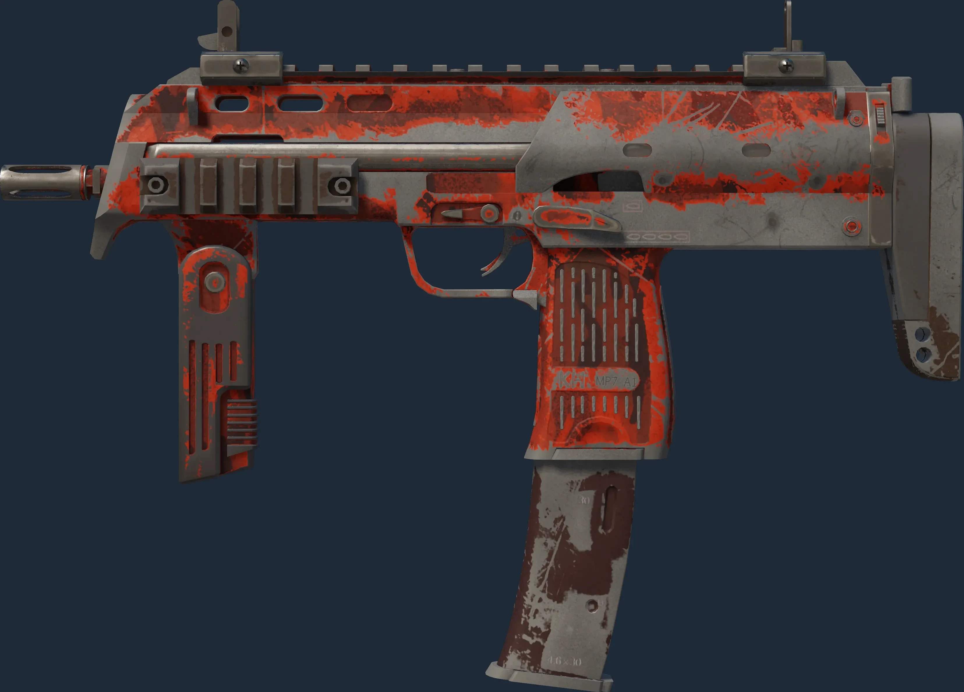 The MP7 | Full Stop is a Covert grade skin for the MP7 in Counter-Strike 2. It features a Custom Paint Job finish and was designed by Valve.