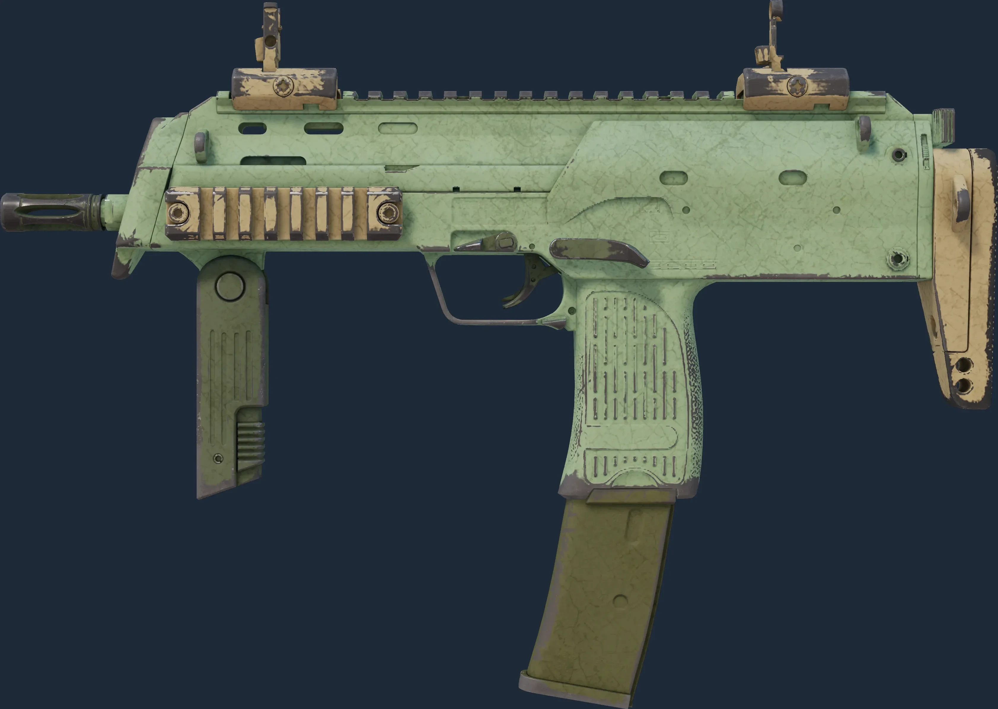 The MP7 | Groundwater is a Covert grade skin for the MP7 in Counter-Strike 2. It features a Custom Paint Job finish and was designed by Valve.