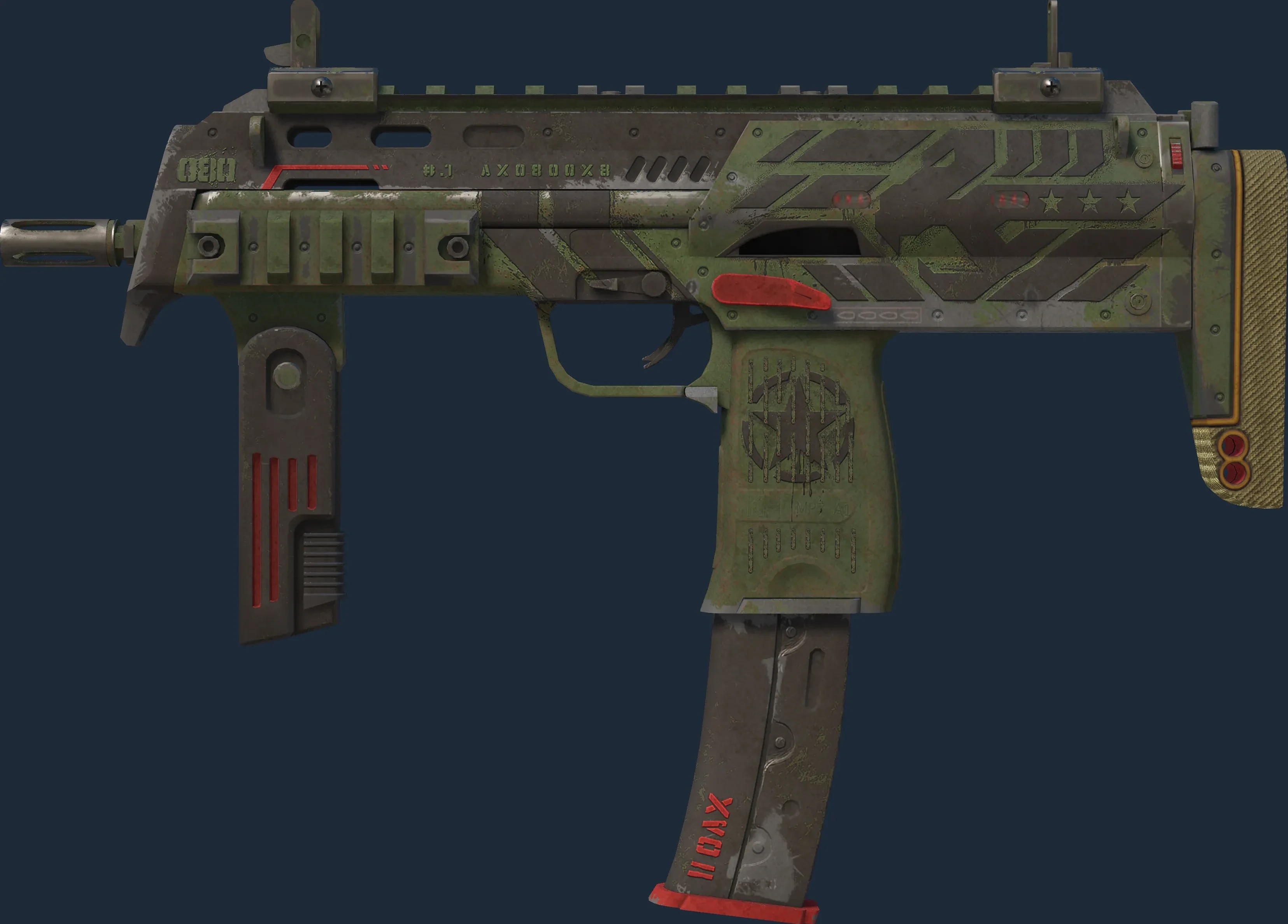 The Guerrilla has a float value range from 0.00 to 1.00, making it available in 5 wear conditions: Factory New, Minimal Wear, Field-Tested, Well-Worn, Battle-Scarred.