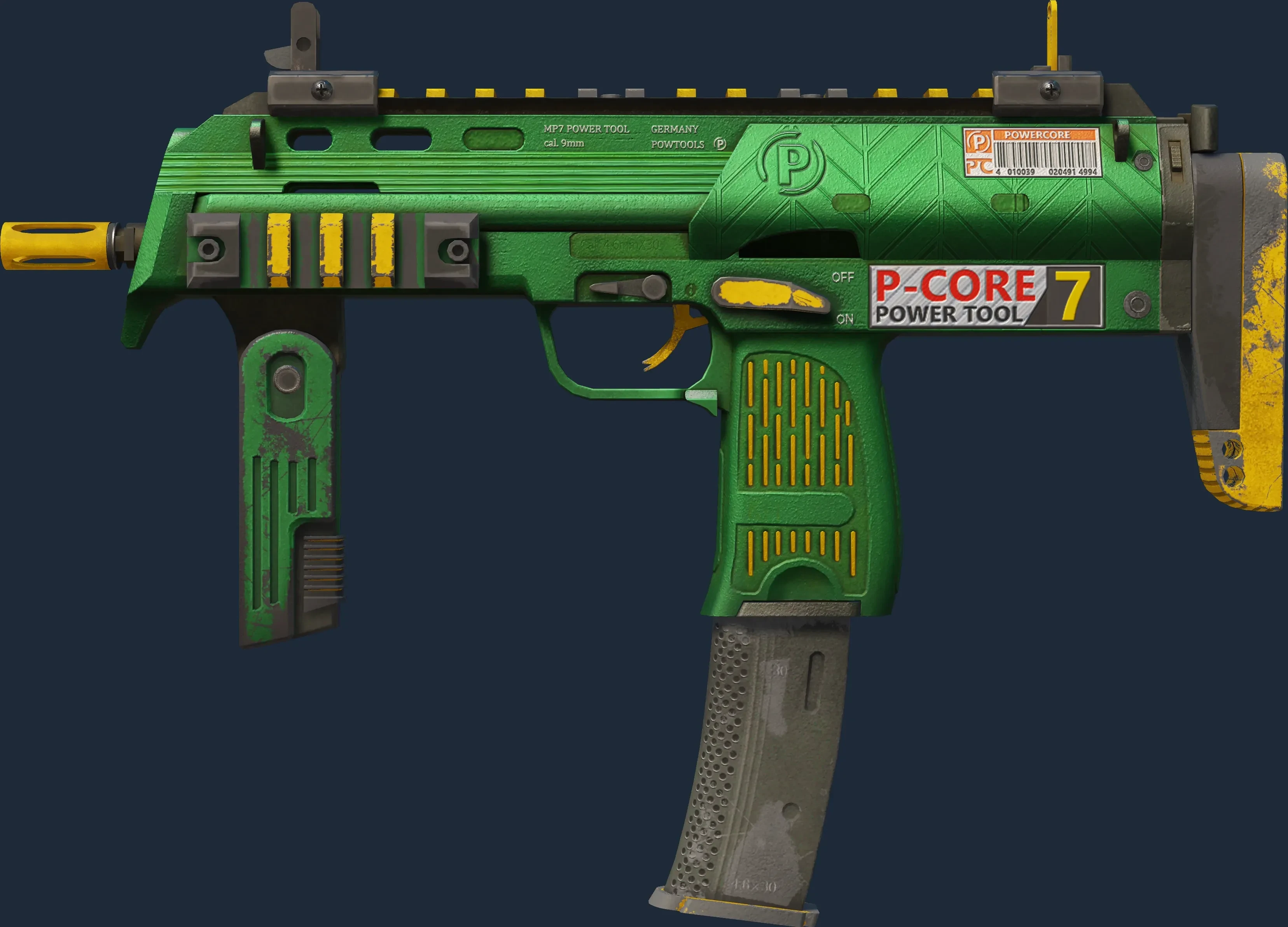 The MP7 | Powercore is a Covert grade skin for the MP7 in Counter-Strike 2. It features a Custom Paint Job finish and was designed by Endrit.