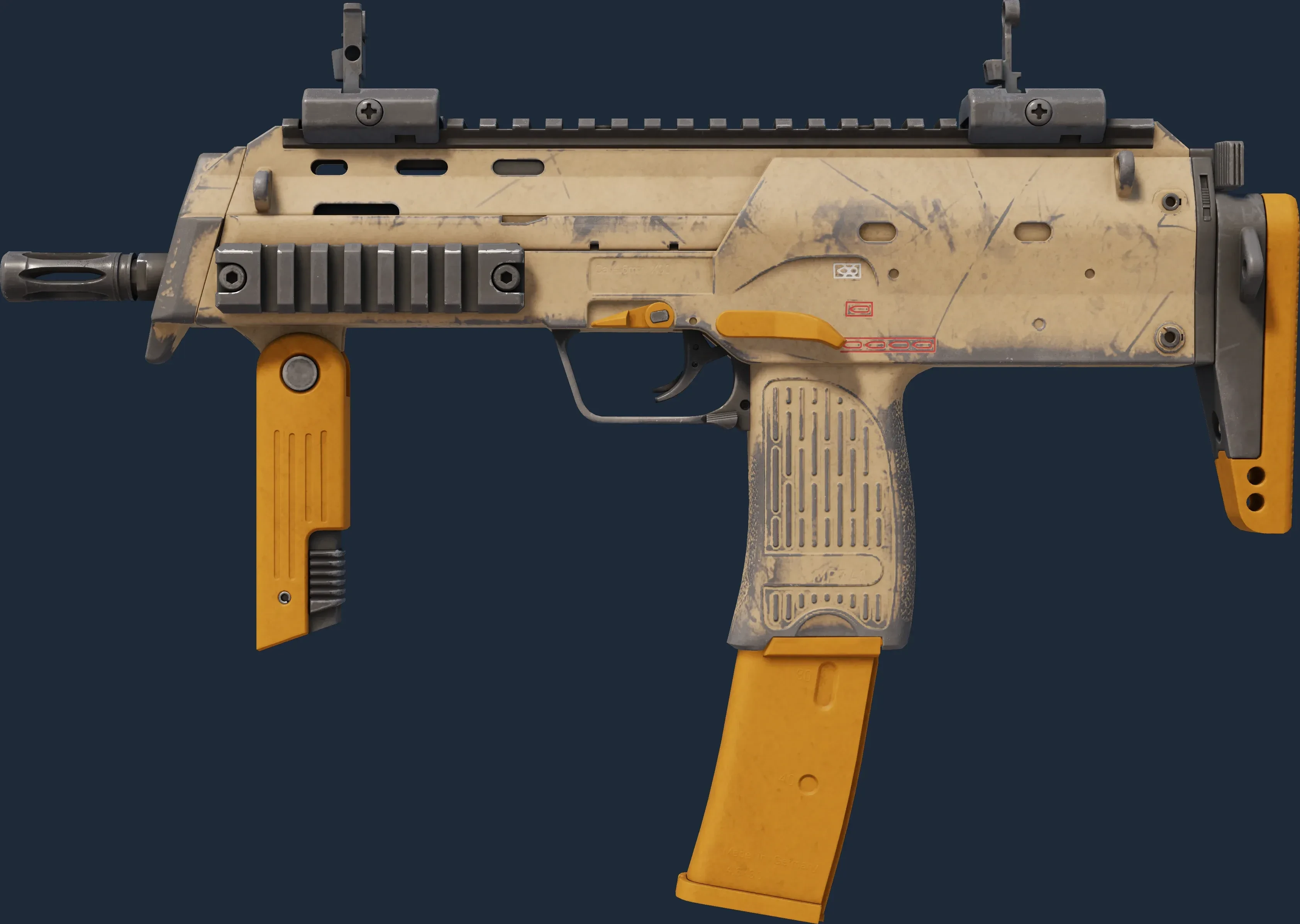 The MP7 | Short Ochre is a Covert grade skin for the MP7 in Counter-Strike 2. It features a Custom Paint Job finish and was designed by Valve.