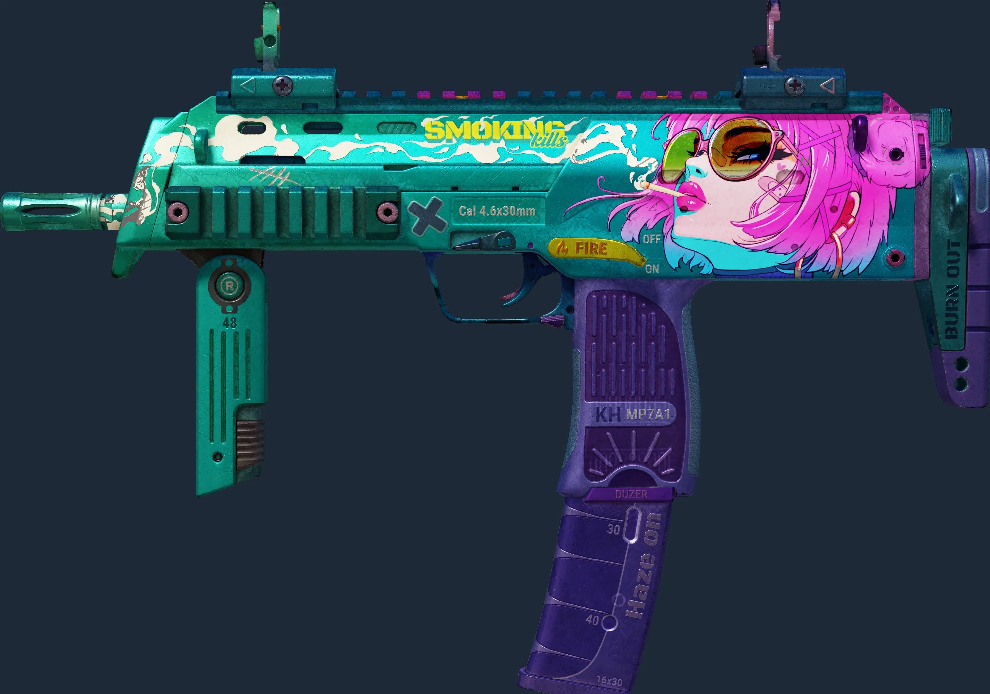 The MP7 | Smoking Kills is a Covert grade skin for the MP7 in Counter-Strike 2. It features a Custom Paint Job finish and was designed by 48.