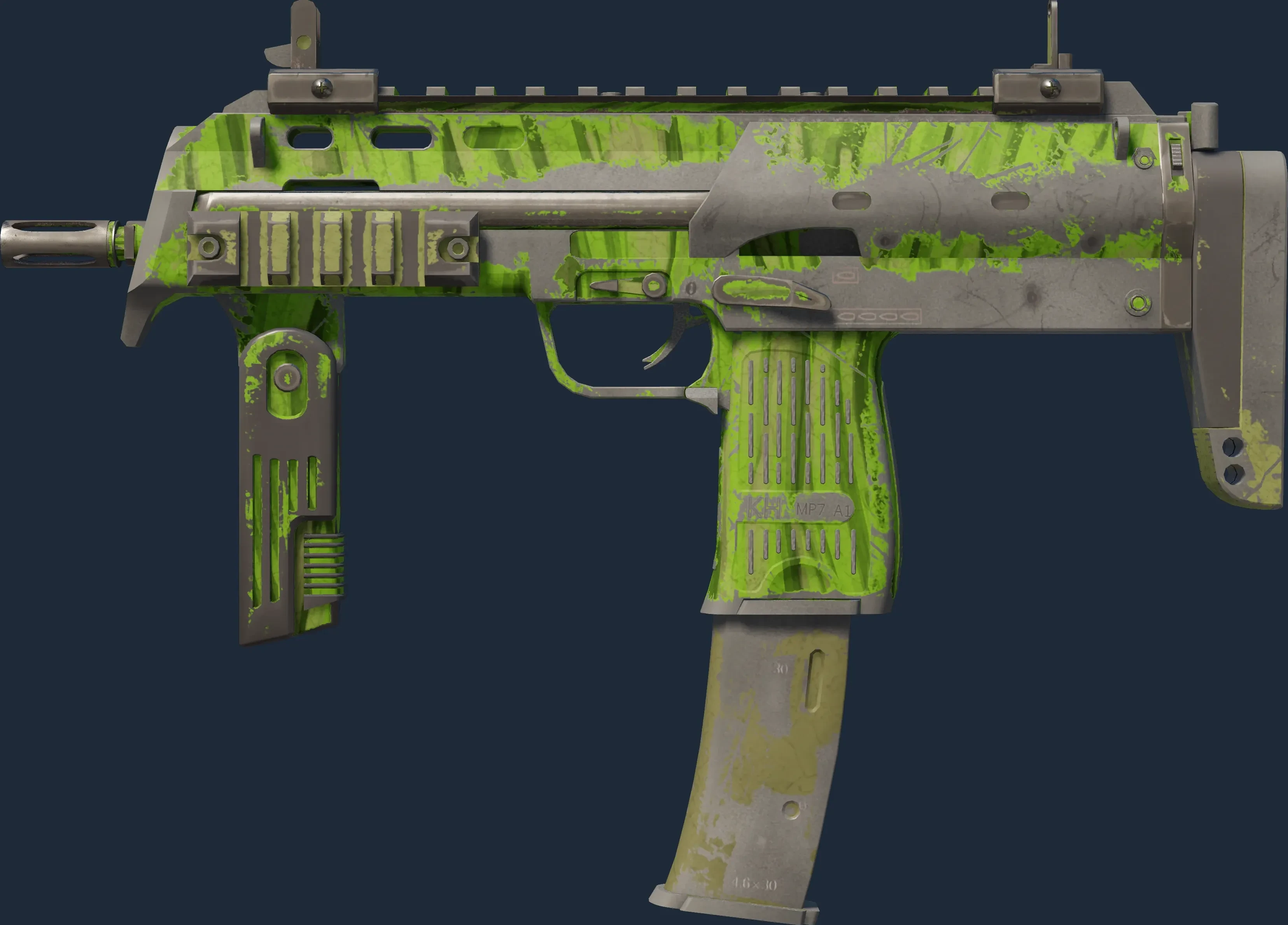 The MP7 | Tall Grass is a Covert grade skin for the MP7 in Counter-Strike 2. It features a Custom Paint Job finish and was designed by Valve.