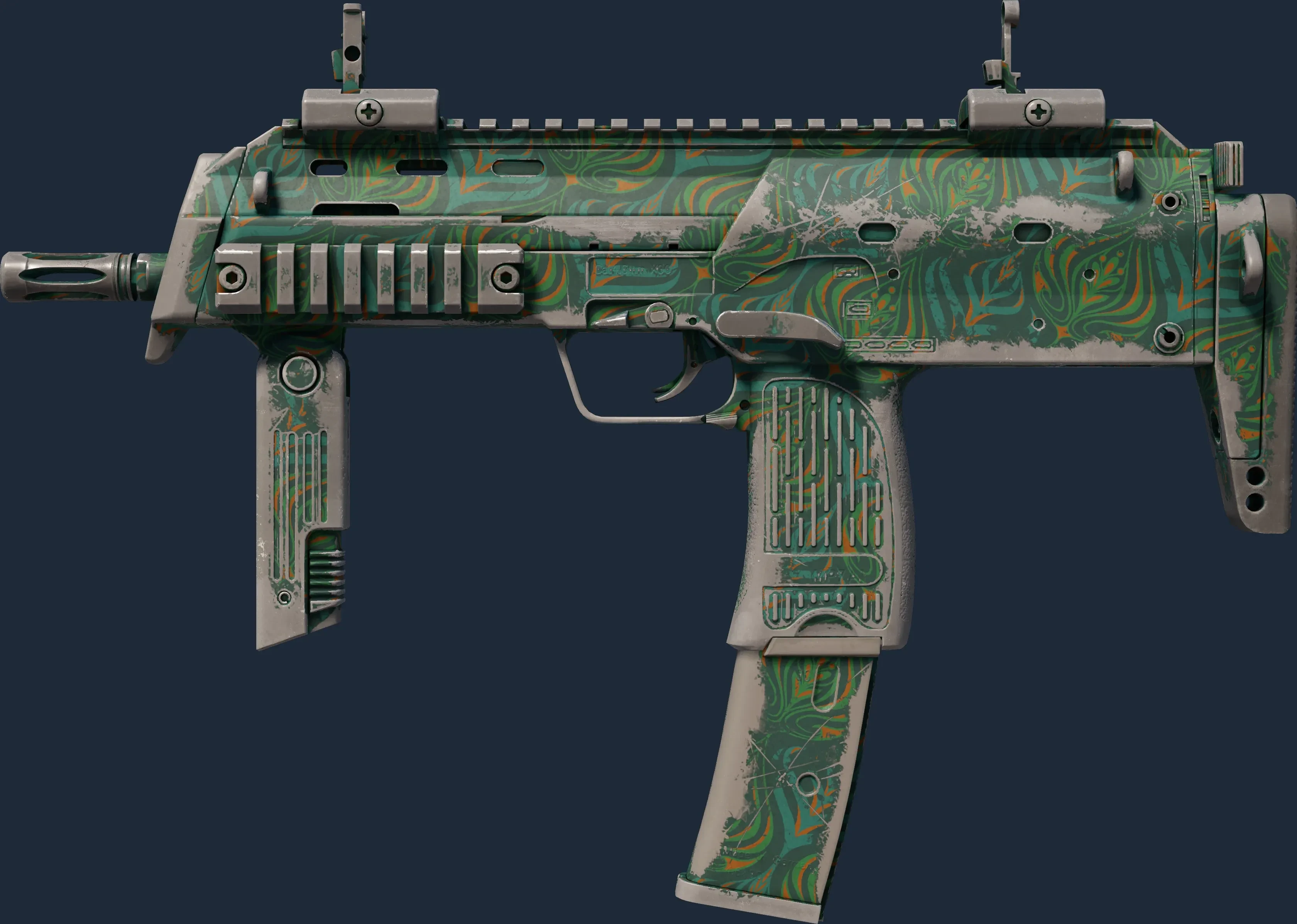 The MP7 | Teal Blossom is a Covert grade skin for the MP7 in Counter-Strike 2. It features a Custom Paint Job finish and was designed by Valve.