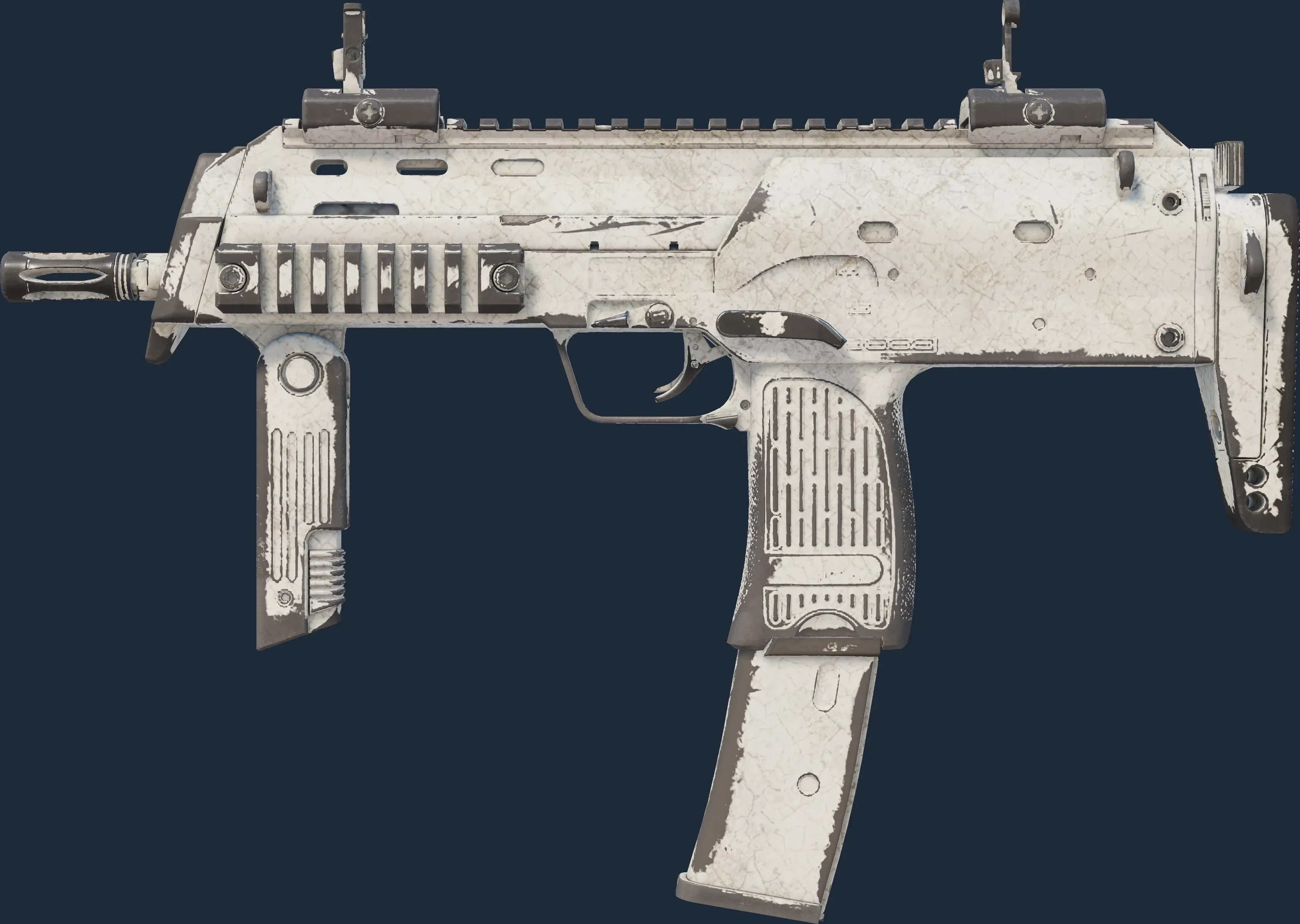 The MP7 | Whiteout is a Covert grade skin for the MP7 in Counter-Strike 2. It features a Custom Paint Job finish and was designed by Valve.