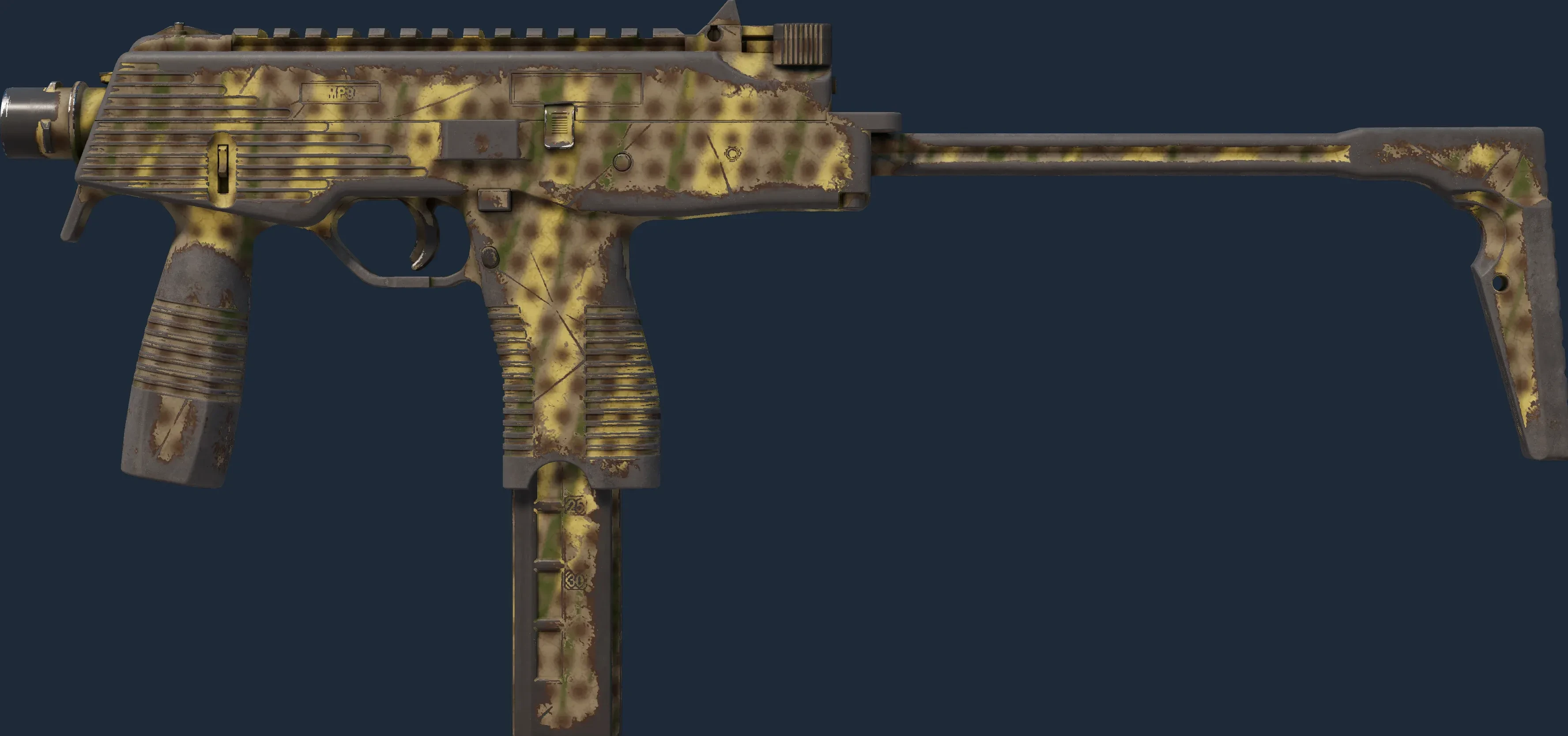 The MP9 | Dry Season is a Covert grade skin for the MP9 in Counter-Strike 2. It features a Custom Paint Job finish and was designed by Valve.