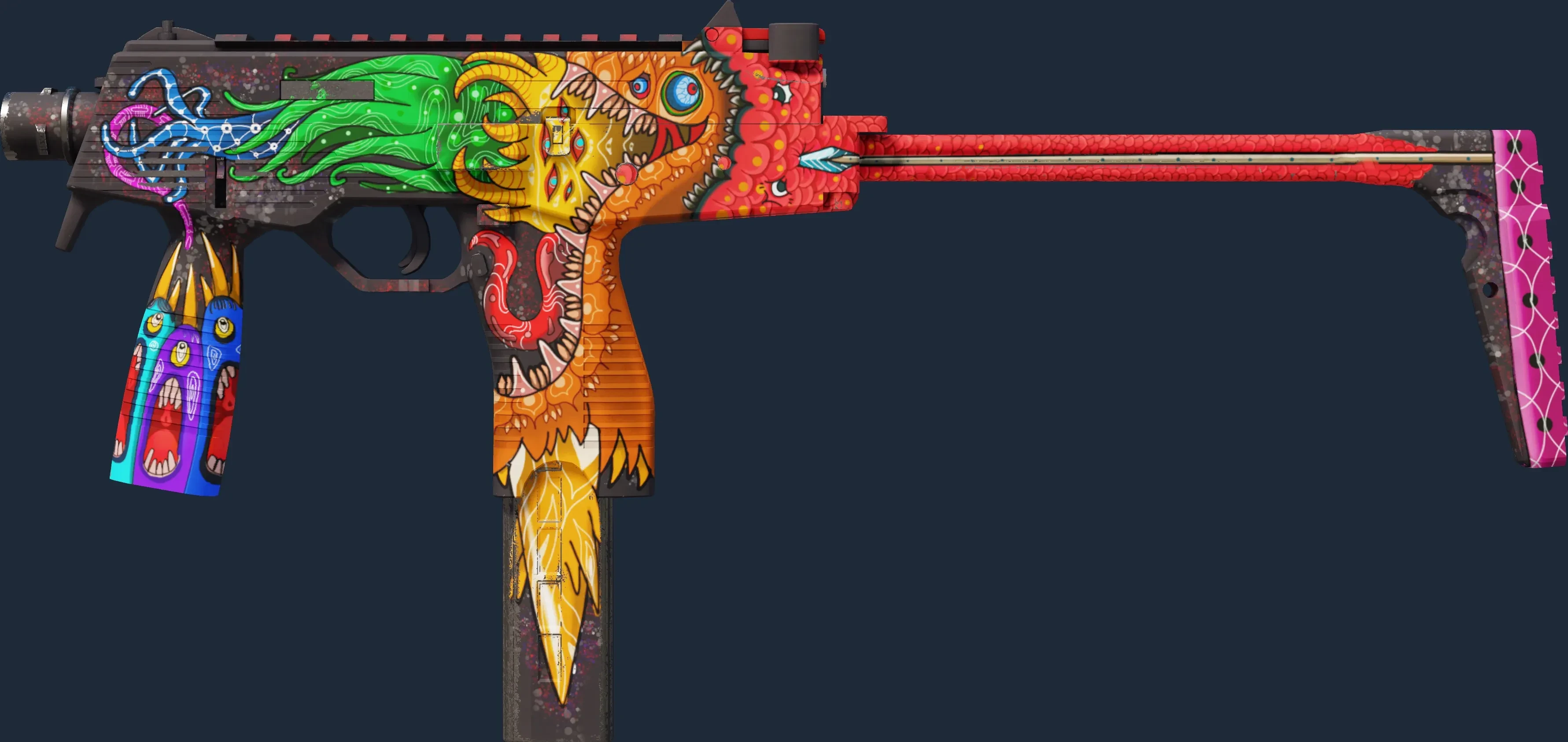The MP9 | Food Chain is a Covert grade skin for the MP9 in Counter-Strike 2. It features a Custom Paint Job finish and was designed by chipAs.