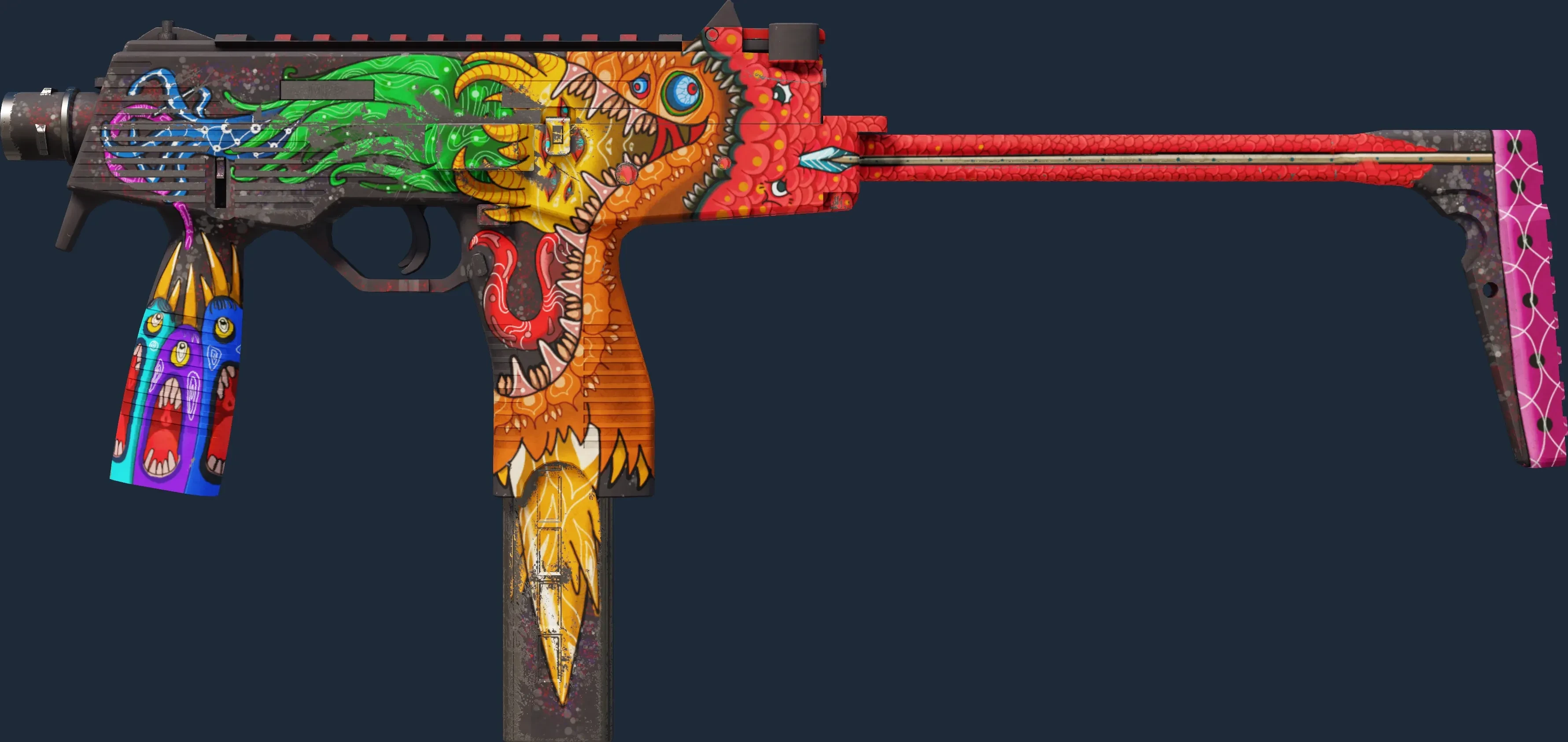 The MP9 | Food Chain is a Covert grade skin for the MP9 in Counter-Strike 2. It features a Custom Paint Job finish and was designed by chipAs.