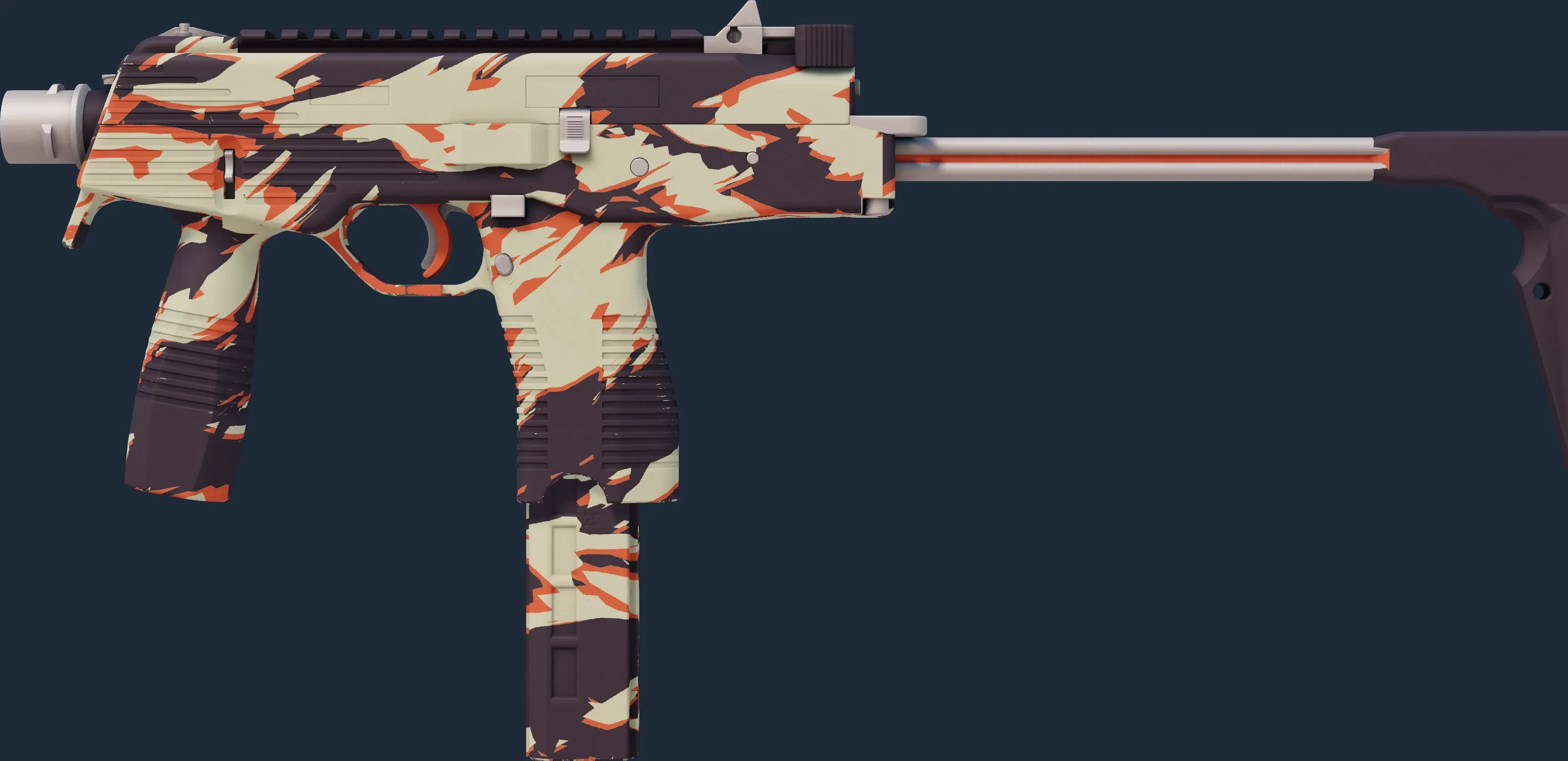 Manufactured in Switzerland, the cutting-edge MP9 SMG is an ergonomic polymer weapon favored by private security firms. A multicolored tiger camo pattern has been applied. _Endangered no more_