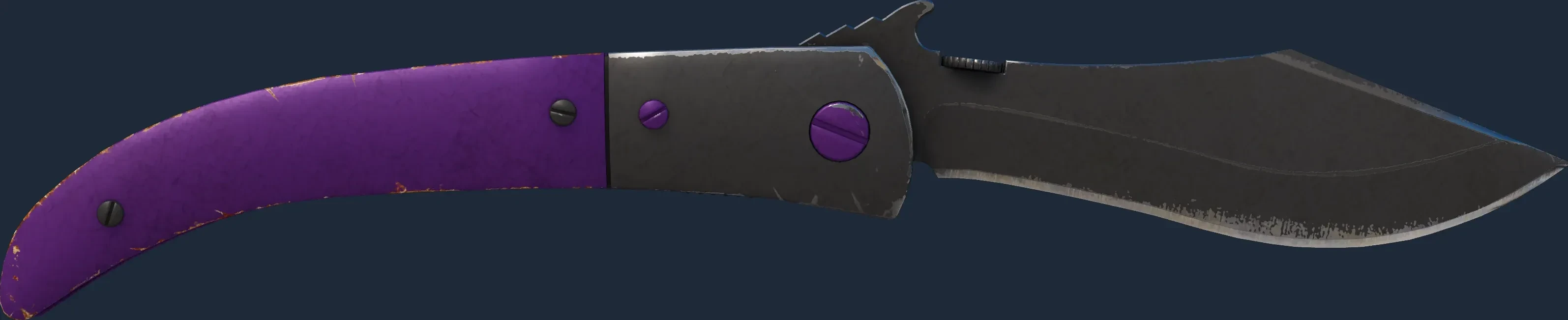 This Navaja Knife has been painted in a "Solid Color" style, with the Ultraviolet finish. Individual components of the weapon are painted with up to four unique colors before reassembly. The skin has been painted in a color scheme of purple and black. Different pattern indexes have no effect on the Ultraviolet finish. The skin uses the new CS2 model.