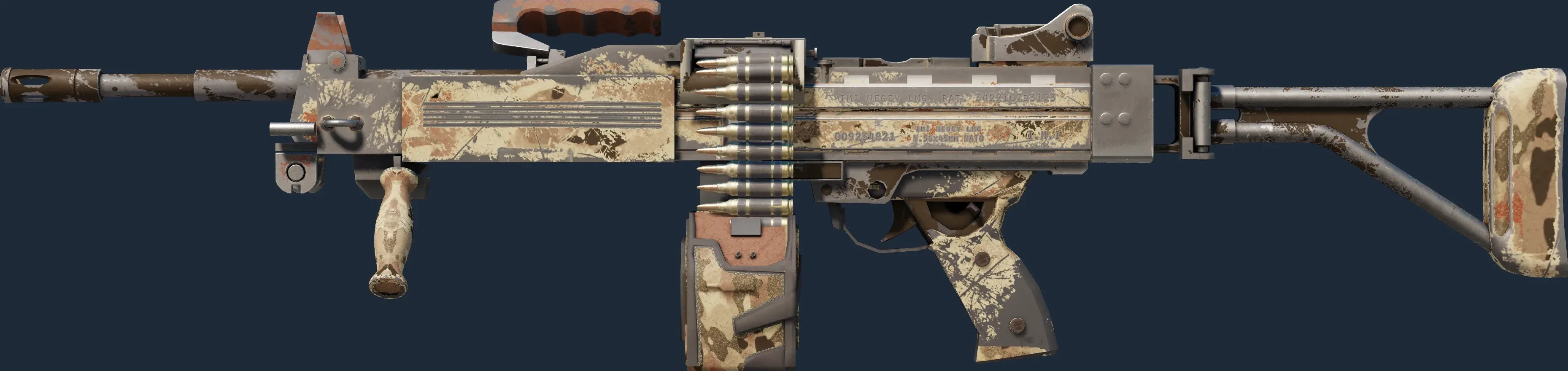 The Negev | Calicamo is a Covert grade skin for the Negev in Counter-Strike 2. It features a Custom Paint Job finish and was designed by Valve.